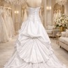 The skirt unfolds into a voluminous, layered ballgown silhouette with artful draping and sculptural movement. Each tier creates depth and texture, flowing into a dramatic chapel-length train that glides beautifully behind you — perfect for a grand entrance and breathtaking photographs.