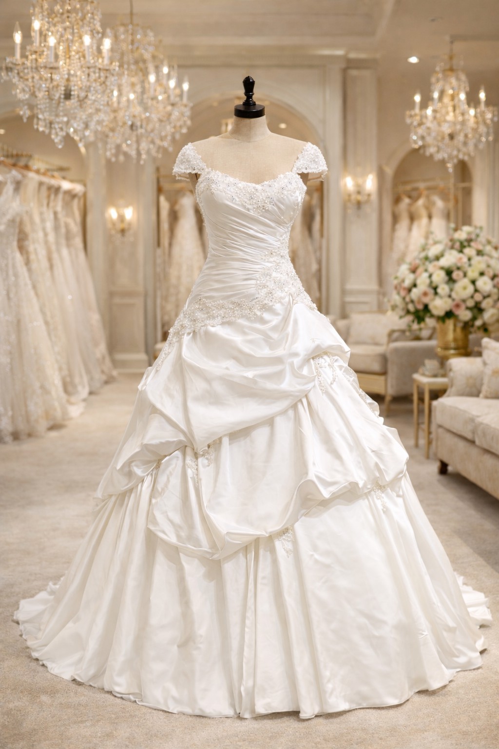 This gown is ideal for the bride who wants to feel like royalty — classic, refined, and unforgettable.