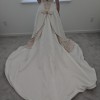 Adorned with exquisite 3D flowers, delicate bows, and intricate embroidery, this dress truly stands out. The pearls woven into the design sparkle with every movement, catching the light and creating a magical aura around you. The floor-length skirt flows beautifully, allowing you to glide down the aisle with confidence and grace.