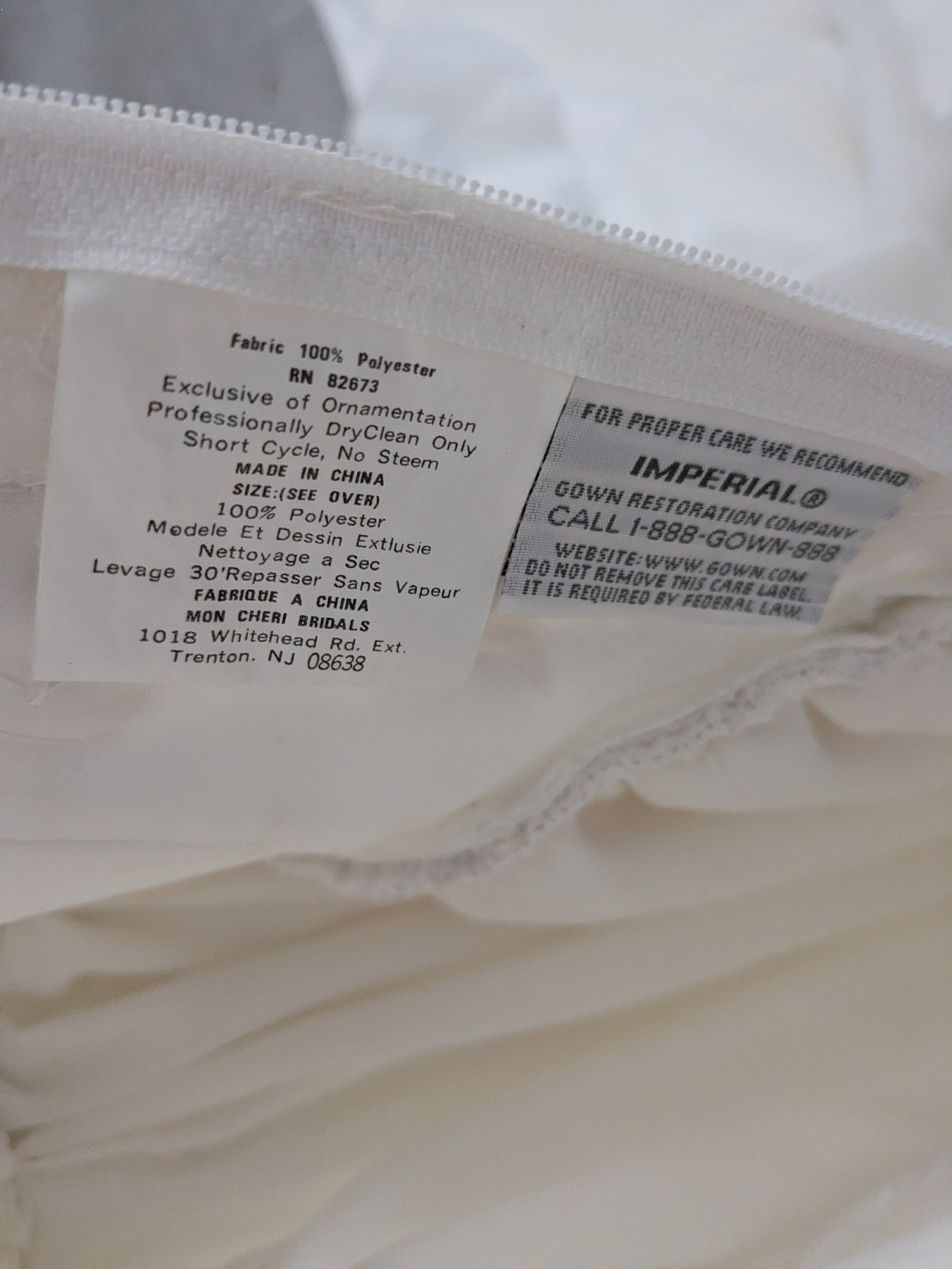 - Not dry cleaned