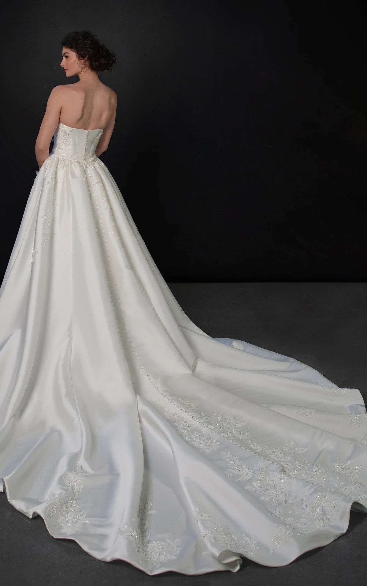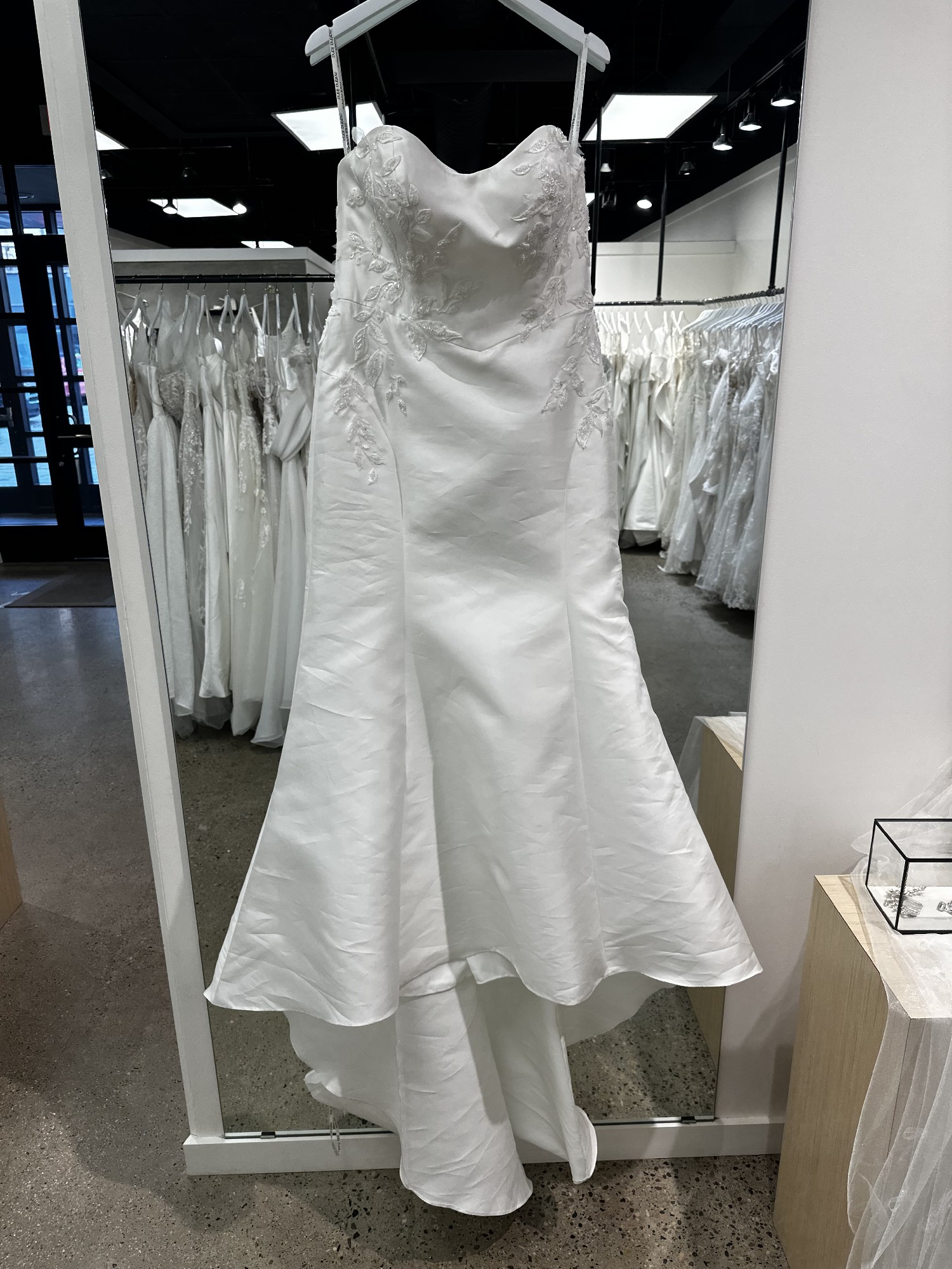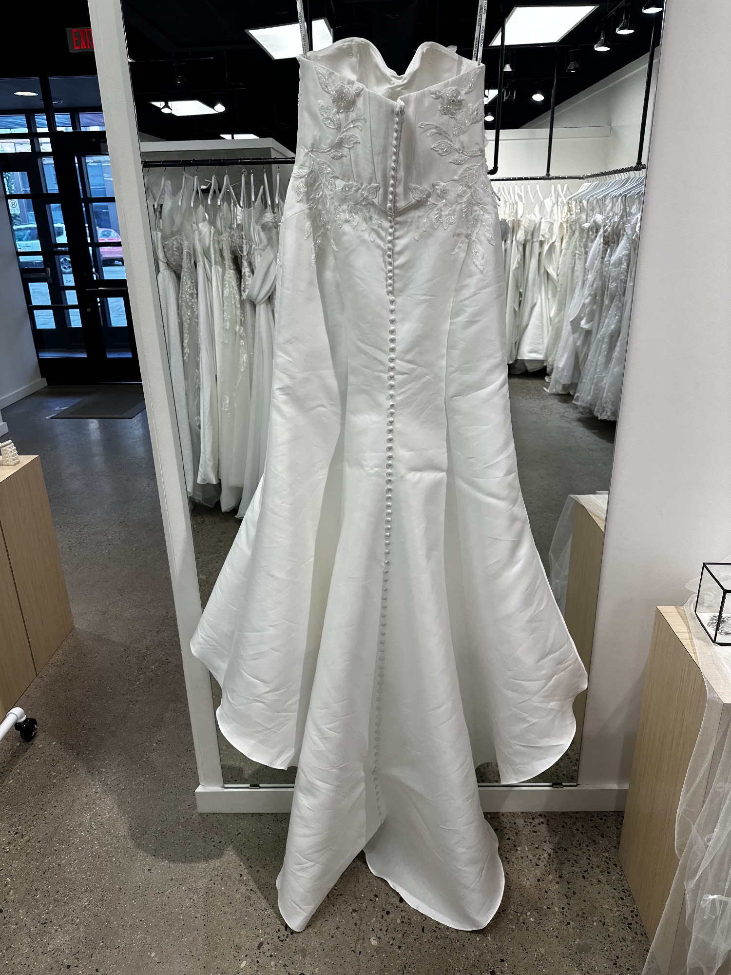 Note we are a bridal store so this gown has not been worn by a bride outside our store. This I a sample or floor model from which brides order their desired size and color.
