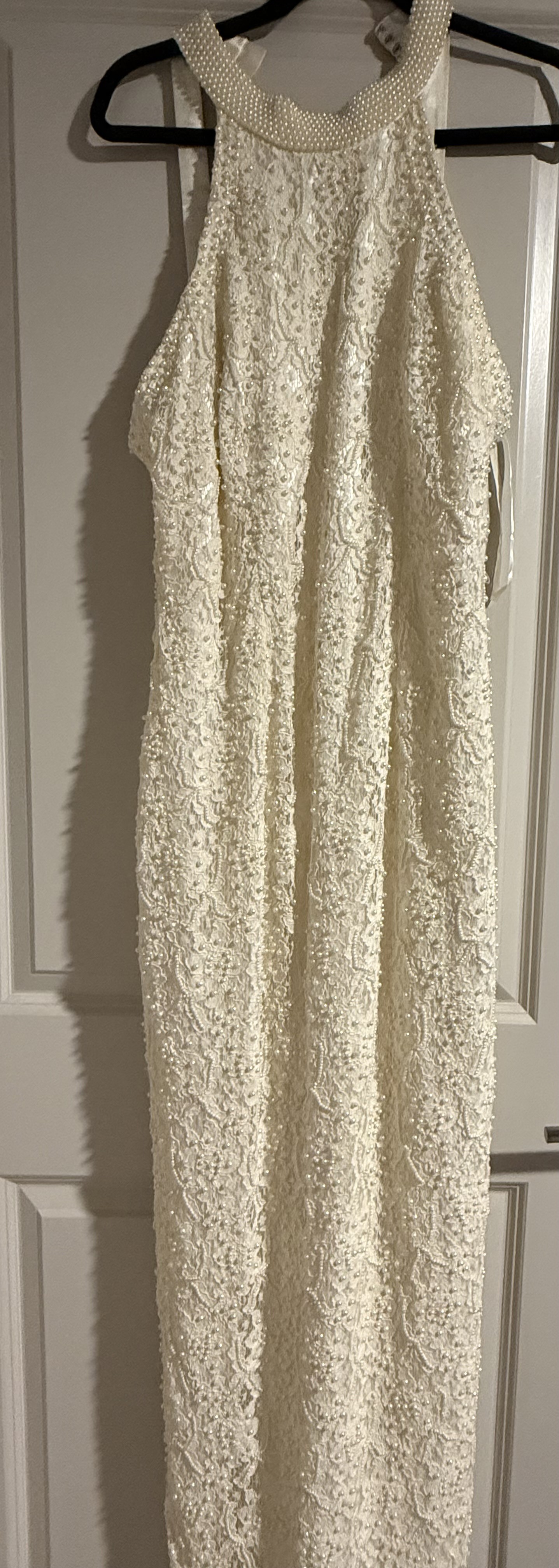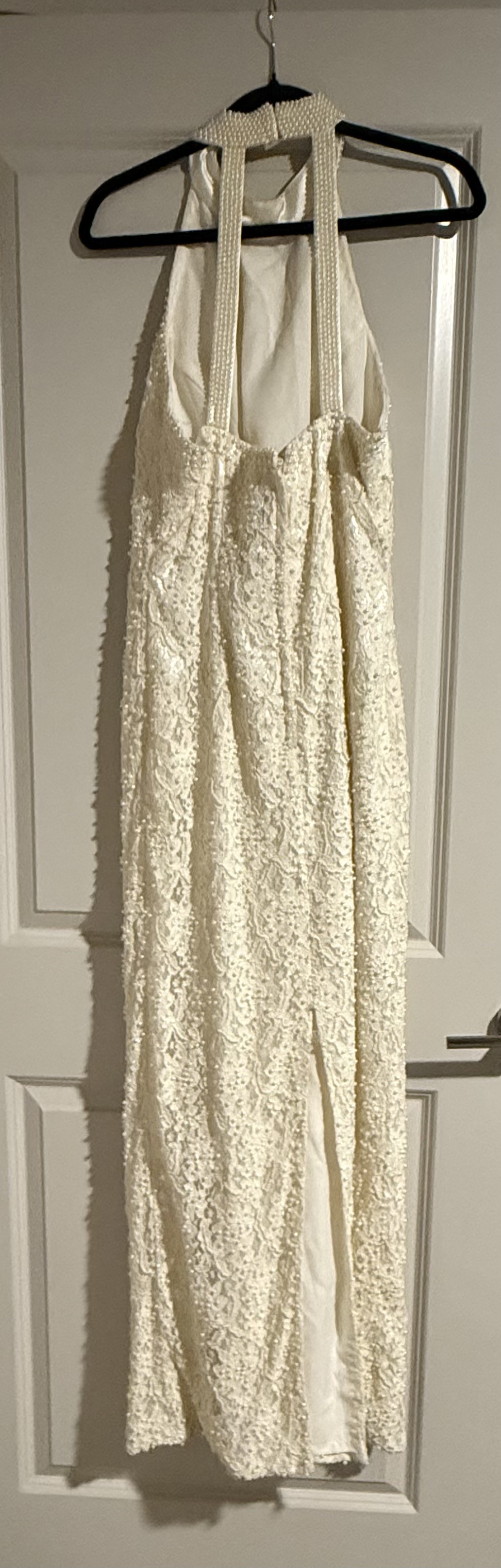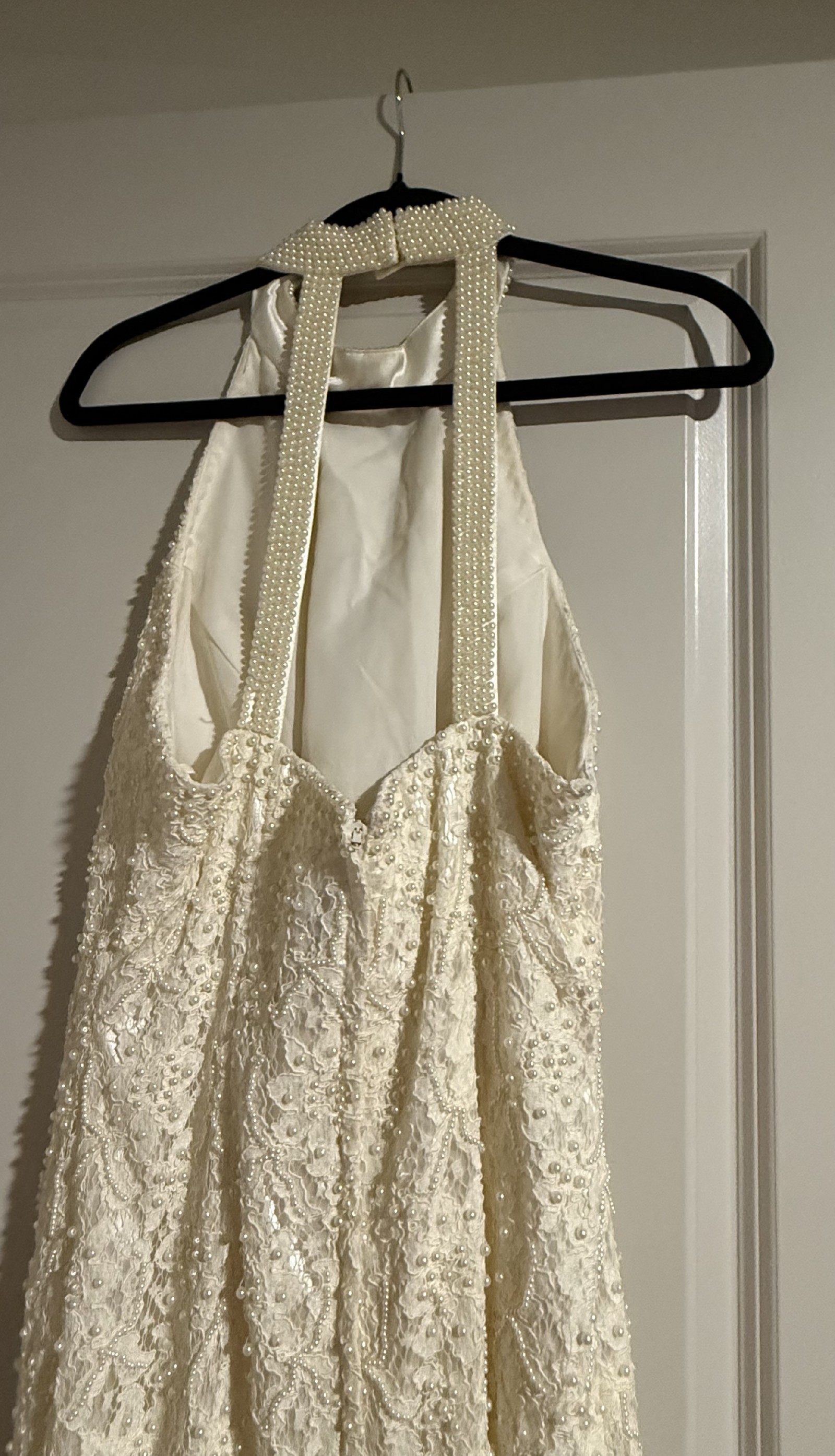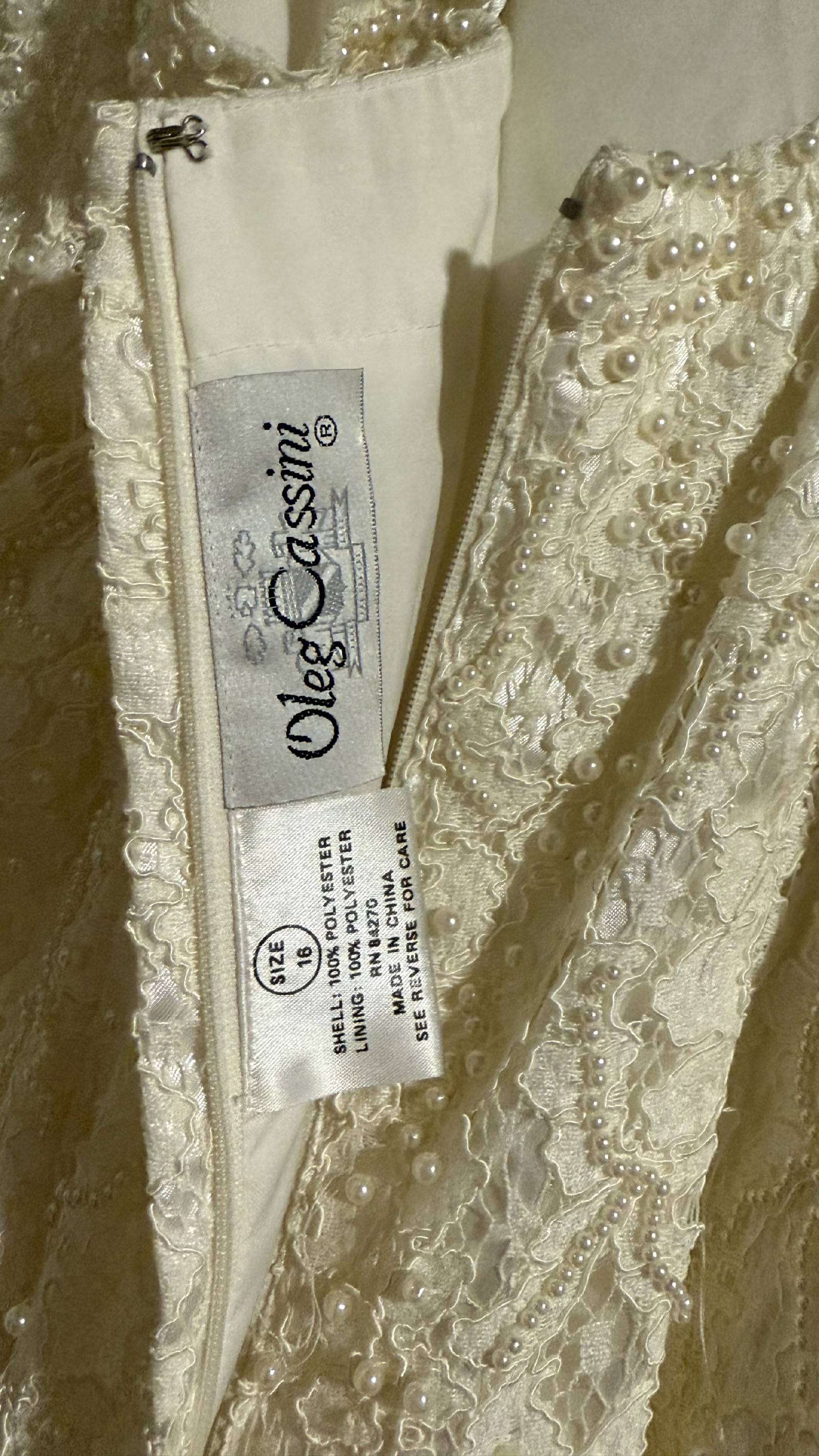 Vintage Oleg Cassini Pearl Halter Wedding Gown – Size 16 – Early 2000s Archival