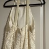Rare early 2000s Oleg Cassini pearl halter wedding gown featuring intricate lace embroidery and extensive pearl beading throughout.