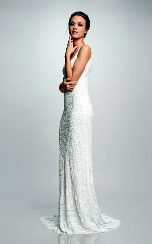 Due to the intricate amount of beading, this dress is quite heavy yet very comfortable to wear- similar to a weighted blanket