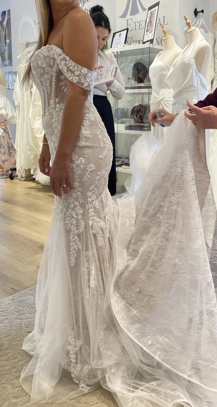 Selling as it has never been worn. It's brand new with tags attached. Ended up having a custom gown made instead.