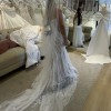 Extended sequin and beaded lace motif and Chantilly lace scallop illusion train