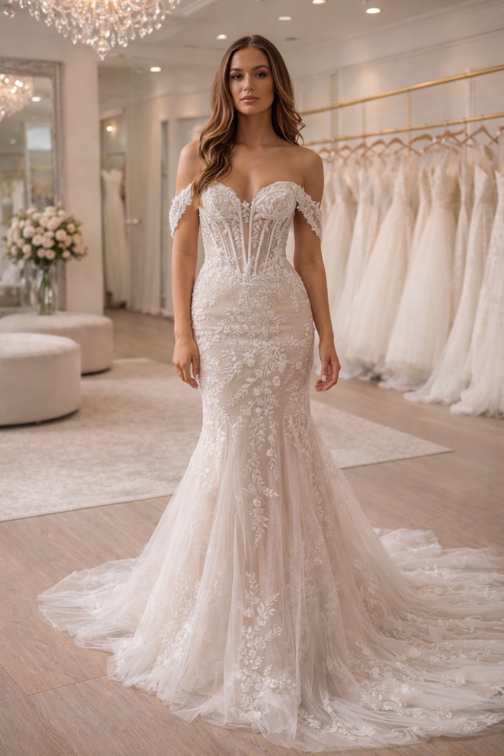 Sexy meets sophisticated in this shimmering beaded mermaid wedding dress — the perfect choice for a fairytale wedding vibe with modern flair.