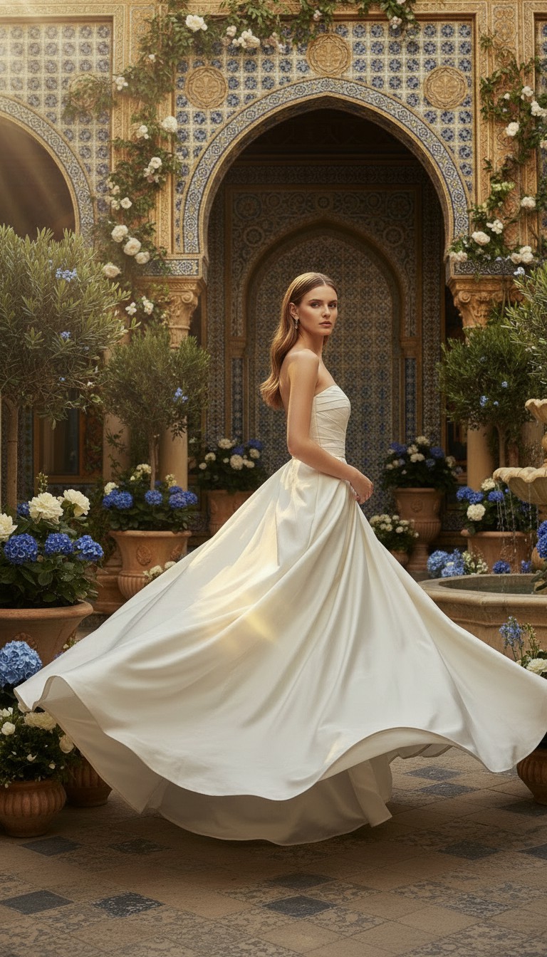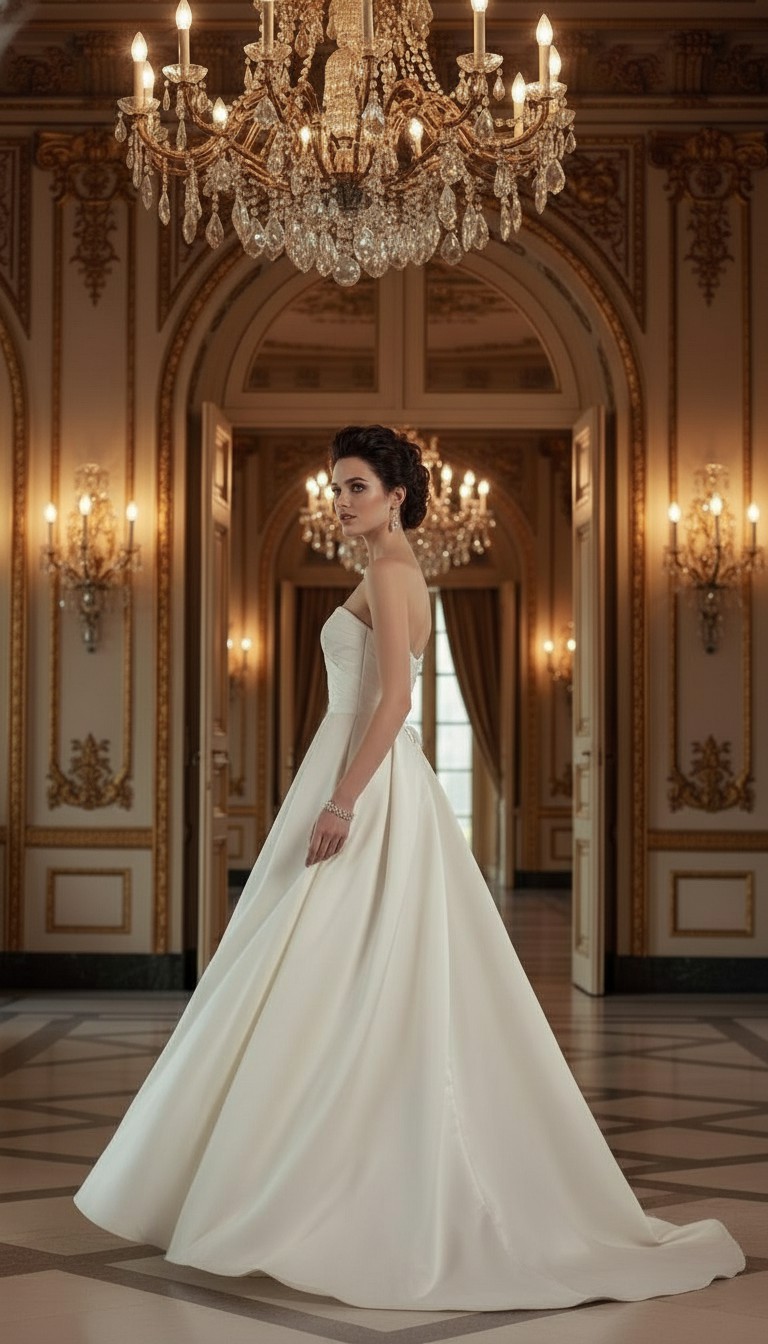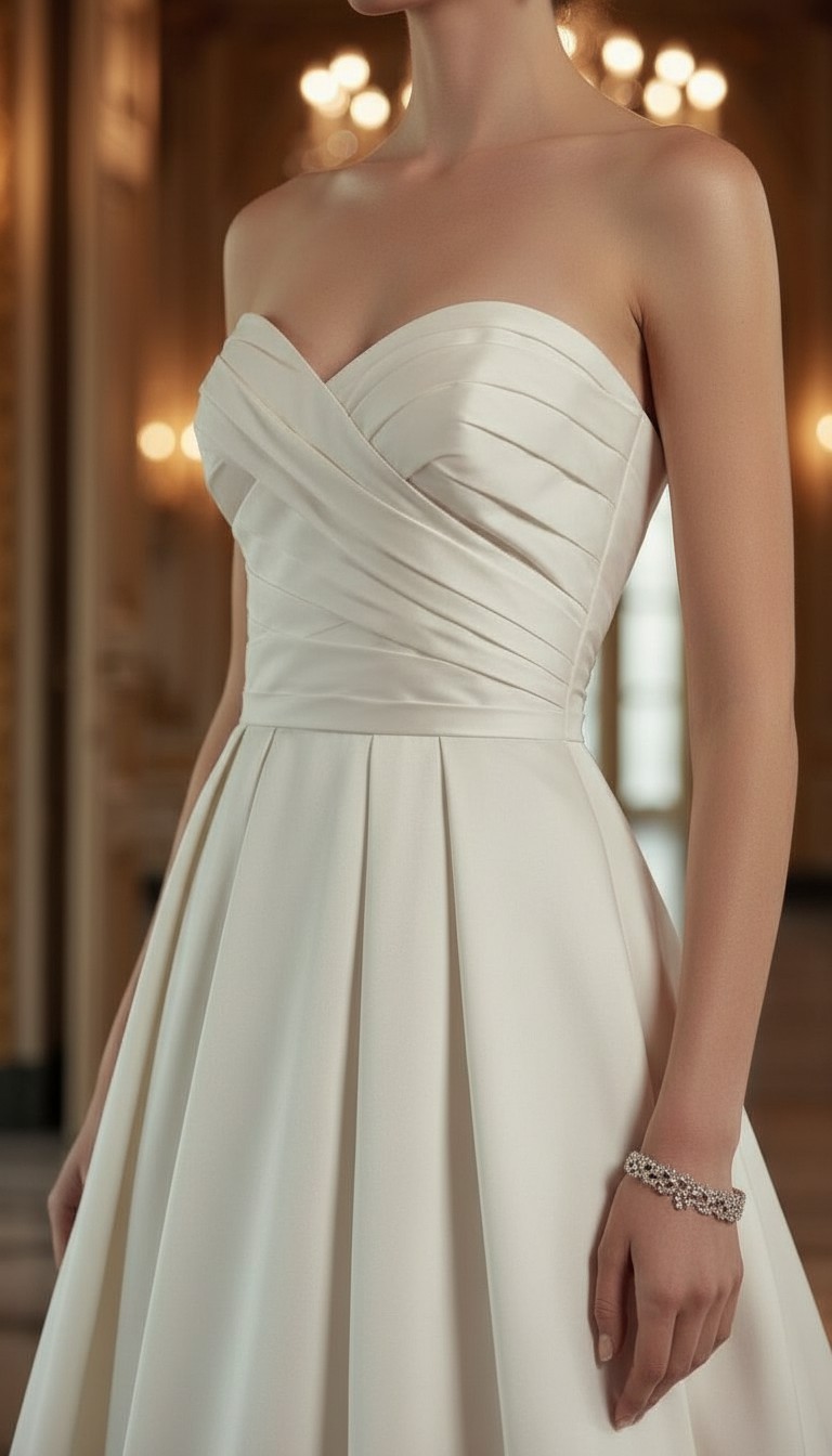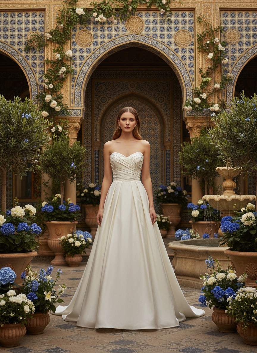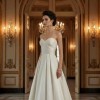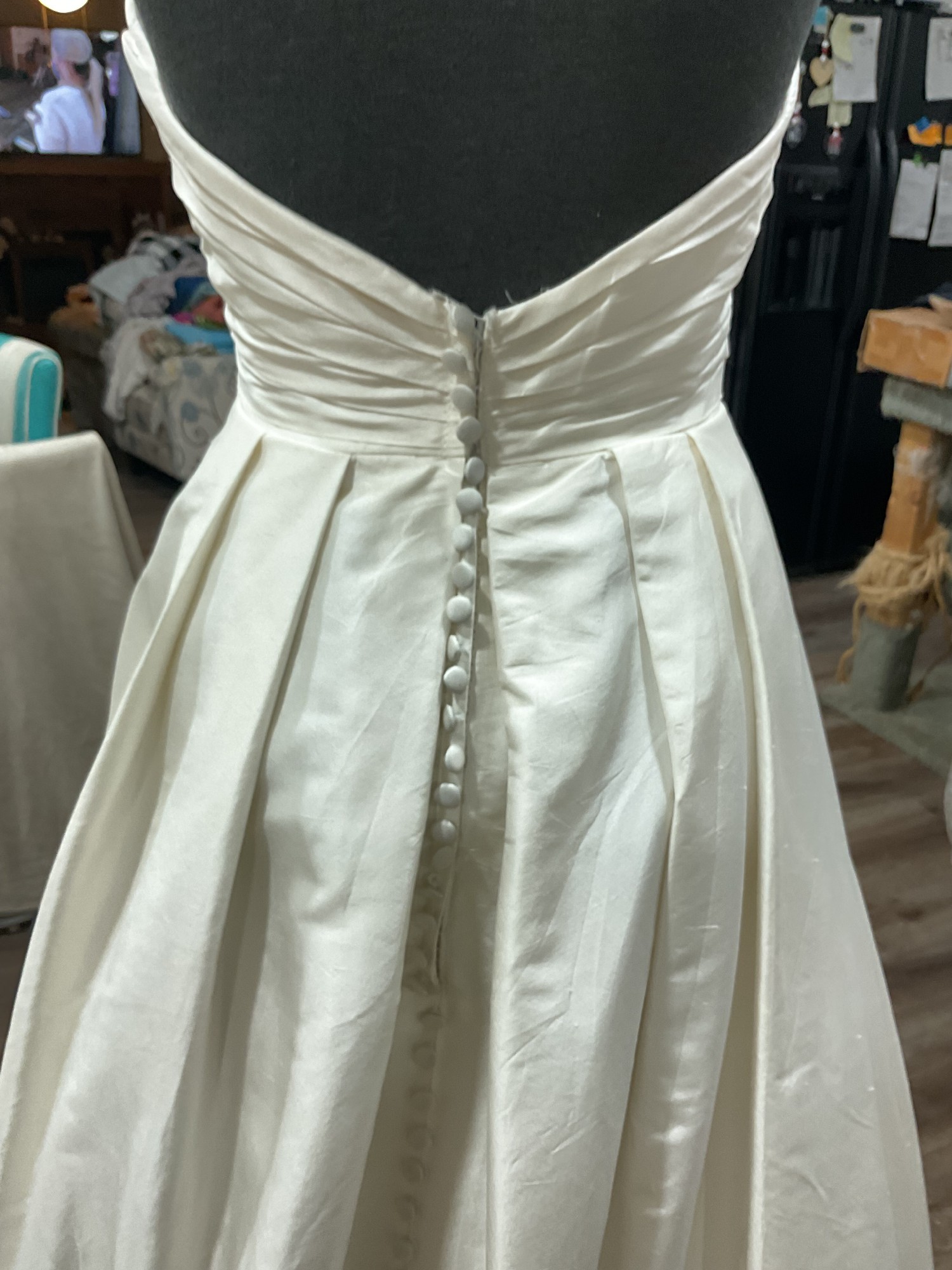 This exquisite Justin Alexander gown, model 8825, is a stunning embodiment of elegance and romance perfect for your special day. Crafted from luxurious silk dupioni in a timeless ivory hue, this ballgown promises to capture attention with its breathtaking silhouette. The sweetheart neckline accentuates the décolletage, while the strapless design highlights your shoulders, creating a graceful yet captivating look.