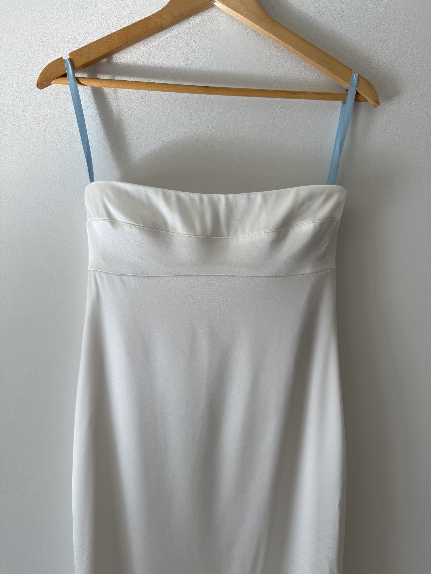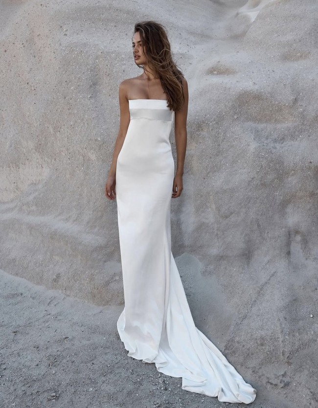 If subliminal simplicity is your statement of choice, slip into Mesina. This nod to the nineties strapless slip dress is made for minimalists with a pared back bust panel detail and relaxed skirt. Crafted from lustrous satin triacetate, Mesina brings an effortless aesthetic without compromising support thanks to its stretch internal corsetry.