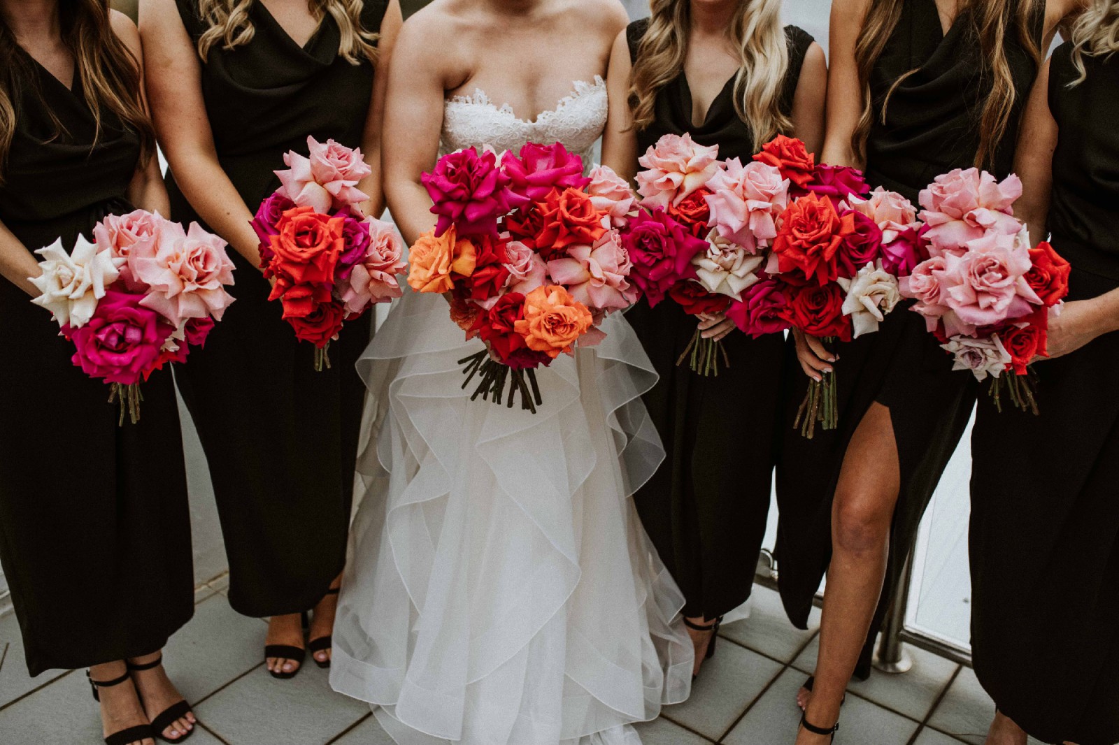 Layers of organza panels and tulle create dramatic folds through-out the skirt. Created with 20 metres of organza and15 metres of English tulle allowing the folds in the skirt to hold their shape.