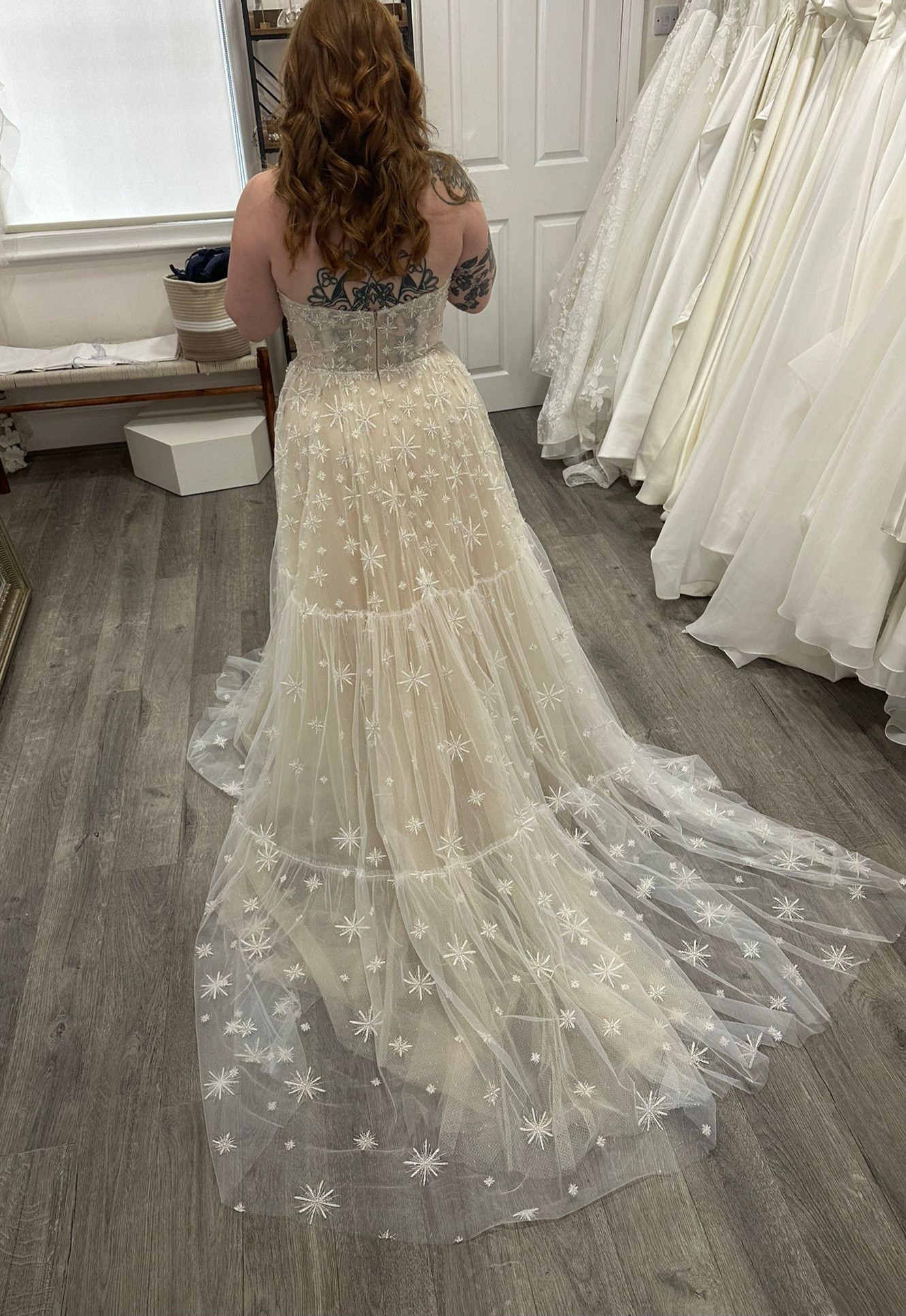 *open to offers* Absolutely stunning Lenny by Willowby by Watters – a romantic, modern gown that deserves its moment down the aisle. This gown is effortlessly romantic with a boho-celestrial feel, perfect for someone wanting something unique yet timeless.