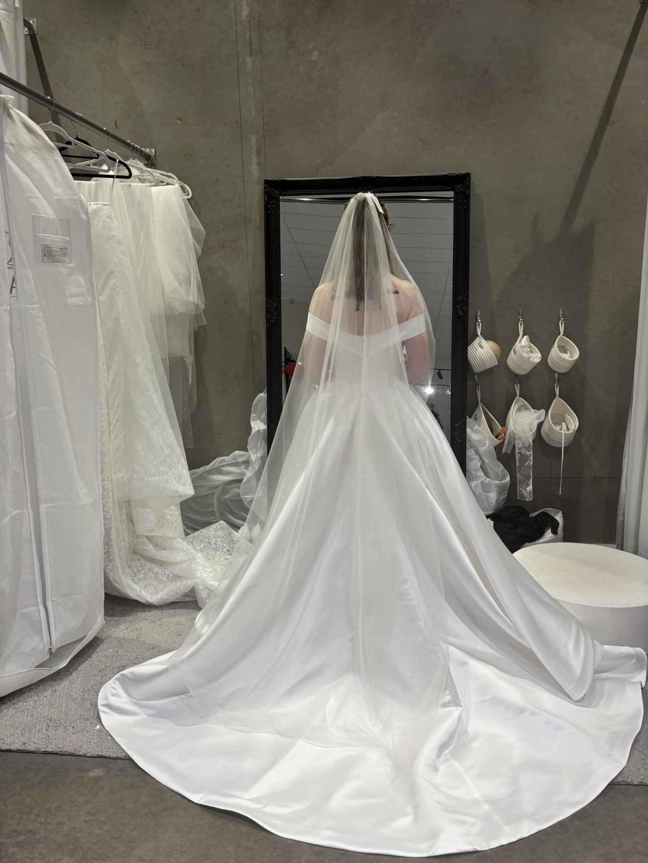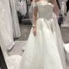 This exquisite ballgown by Jullia Bridal is a dream come true for any bride seeking to make a statement on her special day. With its elegant off-the-shoulder neckline, this dress beautifully accentuates the shoulders and collarbone, while providing a timeless look that radiates romance. The luxurious fabric cascades effortlessly to the floor, creating a captivating silhouette that flatters every figure.
