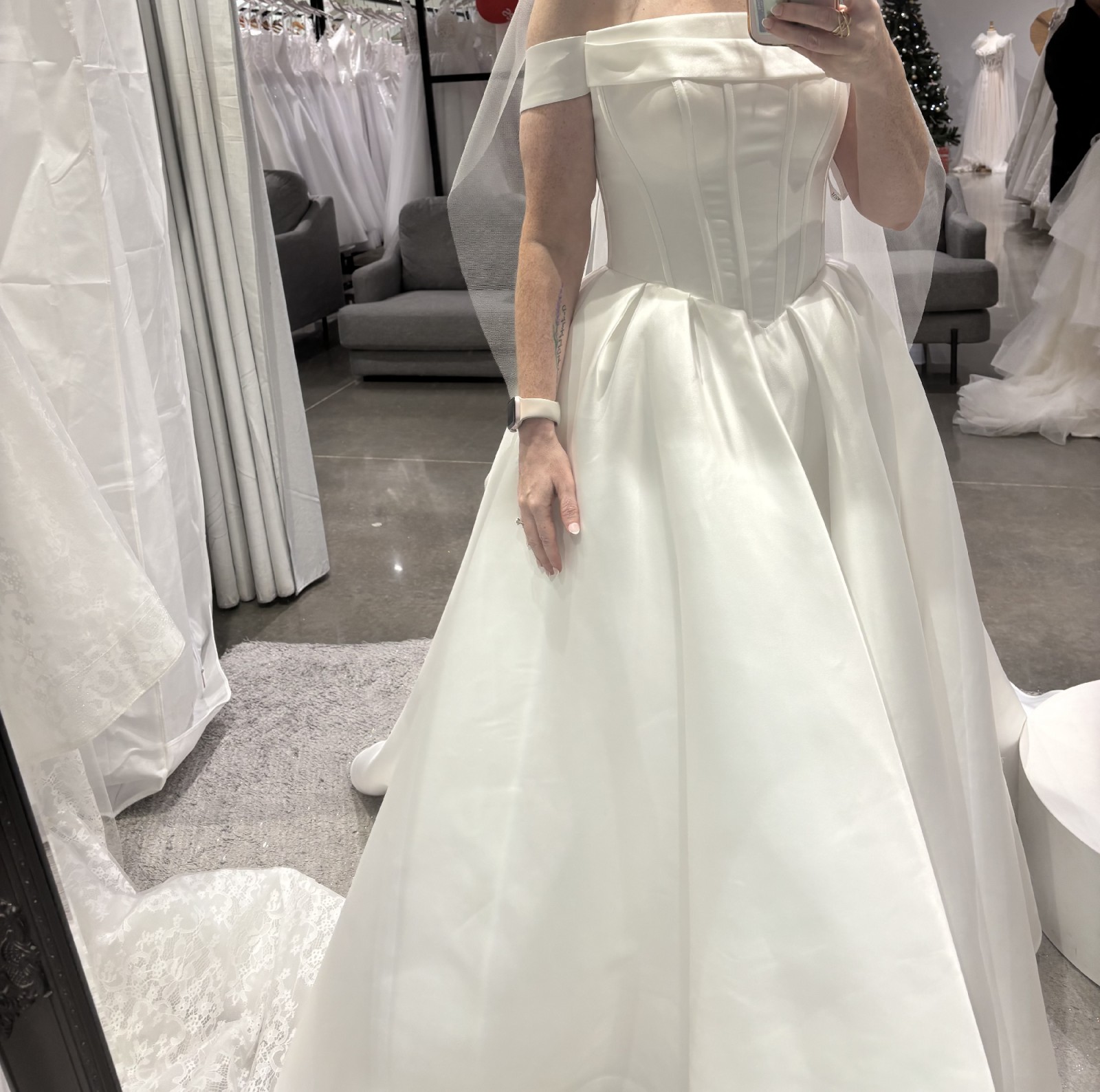 Brand new wedding dress with pockets and detachable sleeve to create a 2in1 dress! Now I have your attention…