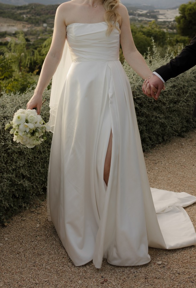I wore this dress on the best day of my life, and I want someone else to cherish it just as much. It's in pristine condition, ready for its next chapter. If you're looking for a dress that combines romance with a hint of boldness, this gown is calling your name. It's not just a dress; it's the perfect canvas for your love story.