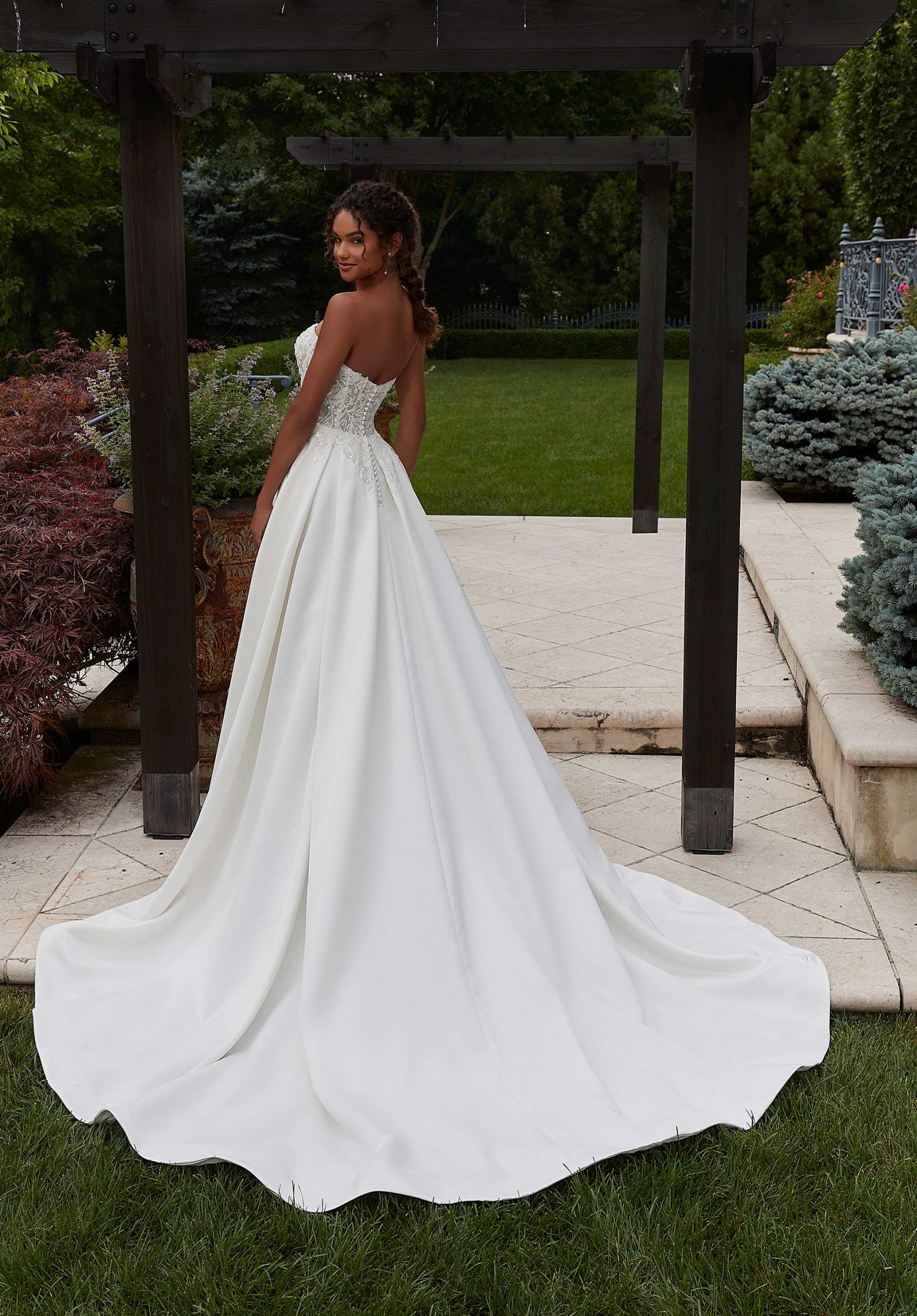 - Hem shortened, slit closed (but can be opened again), bustle included
