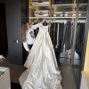 A timeless couture silhouette in Mikado with a voluminous skirt and sweetheart neckline features an ultra-alluring plunge back and a chapel train. Style - Princess off-shoulder wedding dress. Dress comes with two pockets, detachable hoop skirt and a bustle at the back to pin the long for a different look. I am also including the stunning veil which has embellished swarovski crystal detail. I originally paid £900 for the veil and only wore it for 2 hours, it has been cleaned and in perfect condition. Video of the dress fitting is attached to show the fit and flow and I’m happy to provide further videos or pictures if seriously interested. I can also provide more detailed measurements of the dress and happy for viewings in the Hertfordshire area. Dress was worn once and professionally dry cleaned. Selling as it’s simply too magical to be stored away and deserves to make someone truly feel like a princess on their special day!