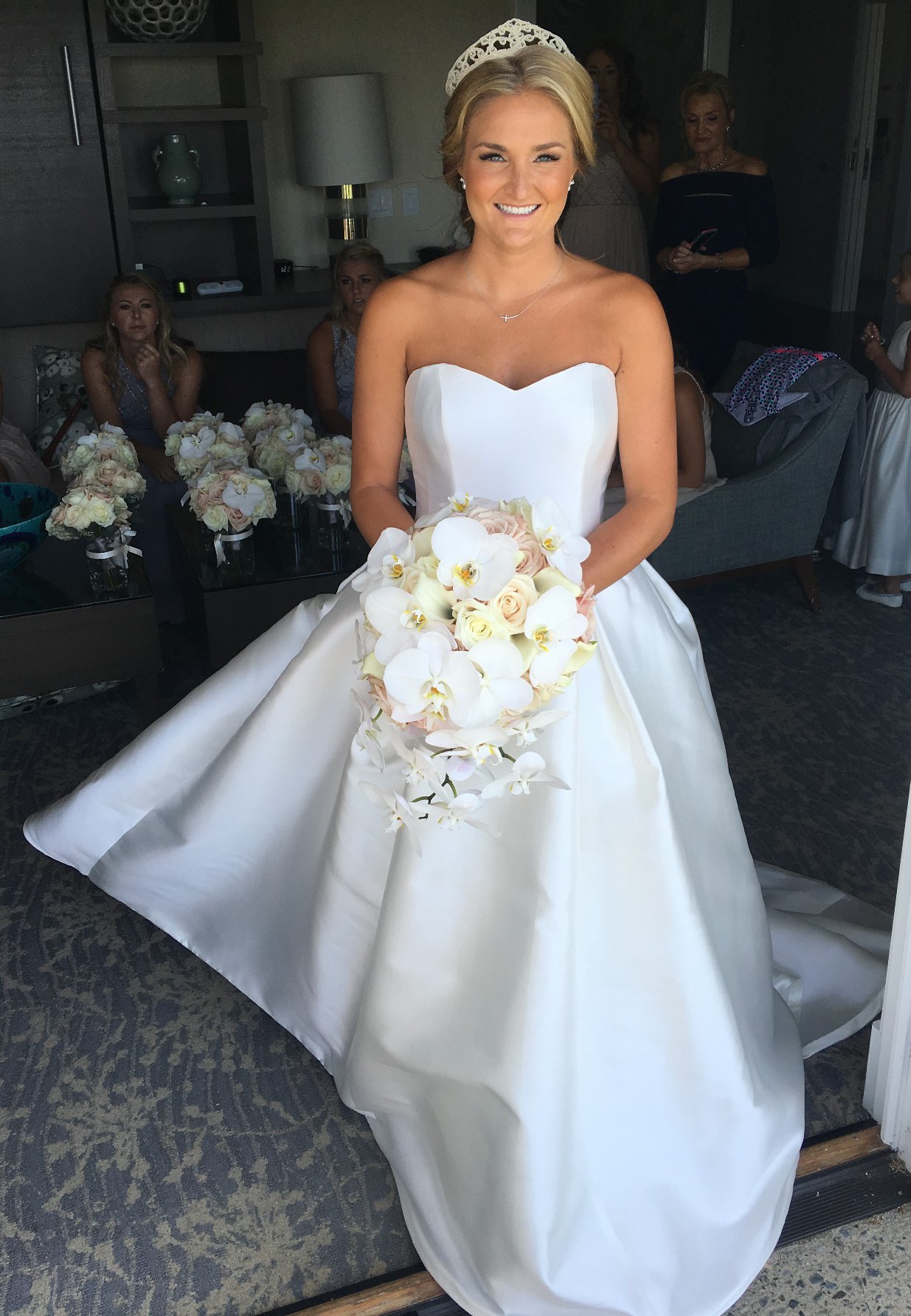 Strapless, silk, simply beautiful wedding gown.