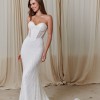 This Evie Young Bridal dress is a dream come true for any bride looking to make a statement on her special day. With its elegant sheath silhouette and stunning sweetheart neckline, it hugs the curves in all the right places while offering a timeless and romantic look. The strapless design allows for freedom of movement, letting you dance the night away effortlessly while feeling confident and beautiful.