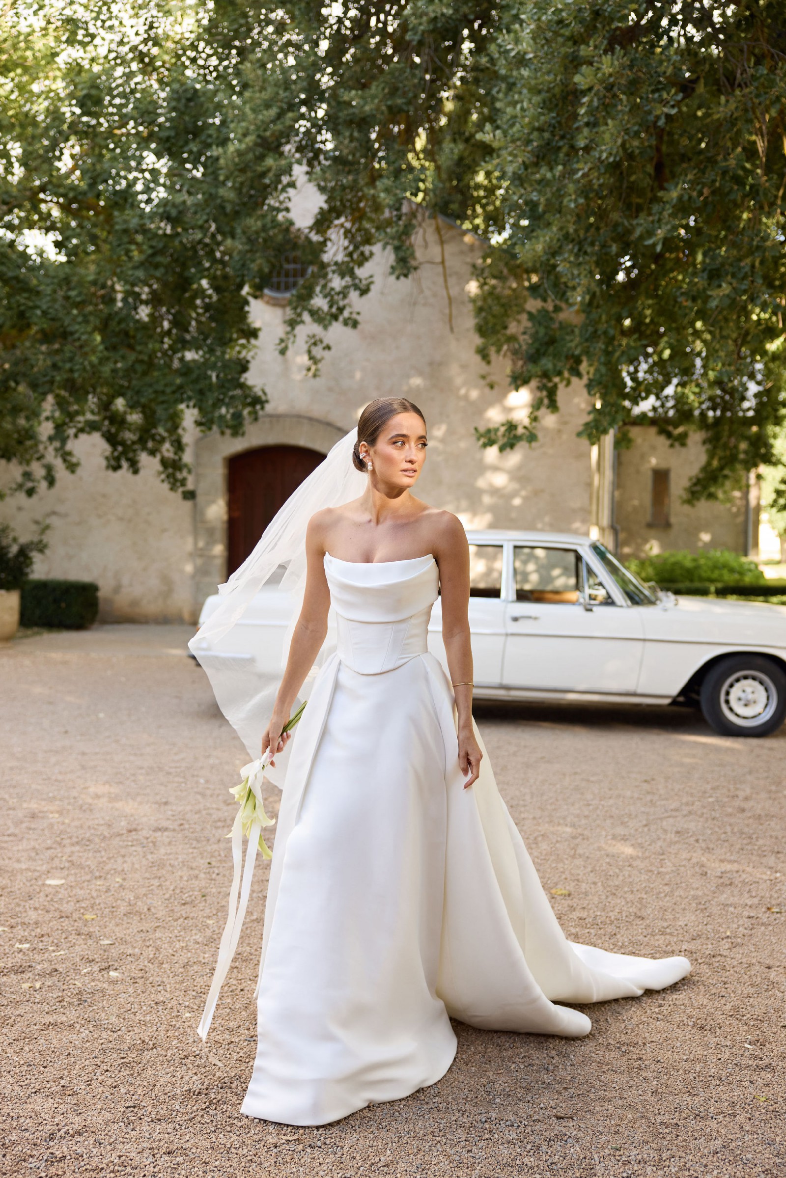 Kyha Bride, Kasia Corset and Milford skirt - the most iconic pairing. Fits a size AU6 perfectly and I am 170cm. I wore heels on my wedding day and it was the perfect length.