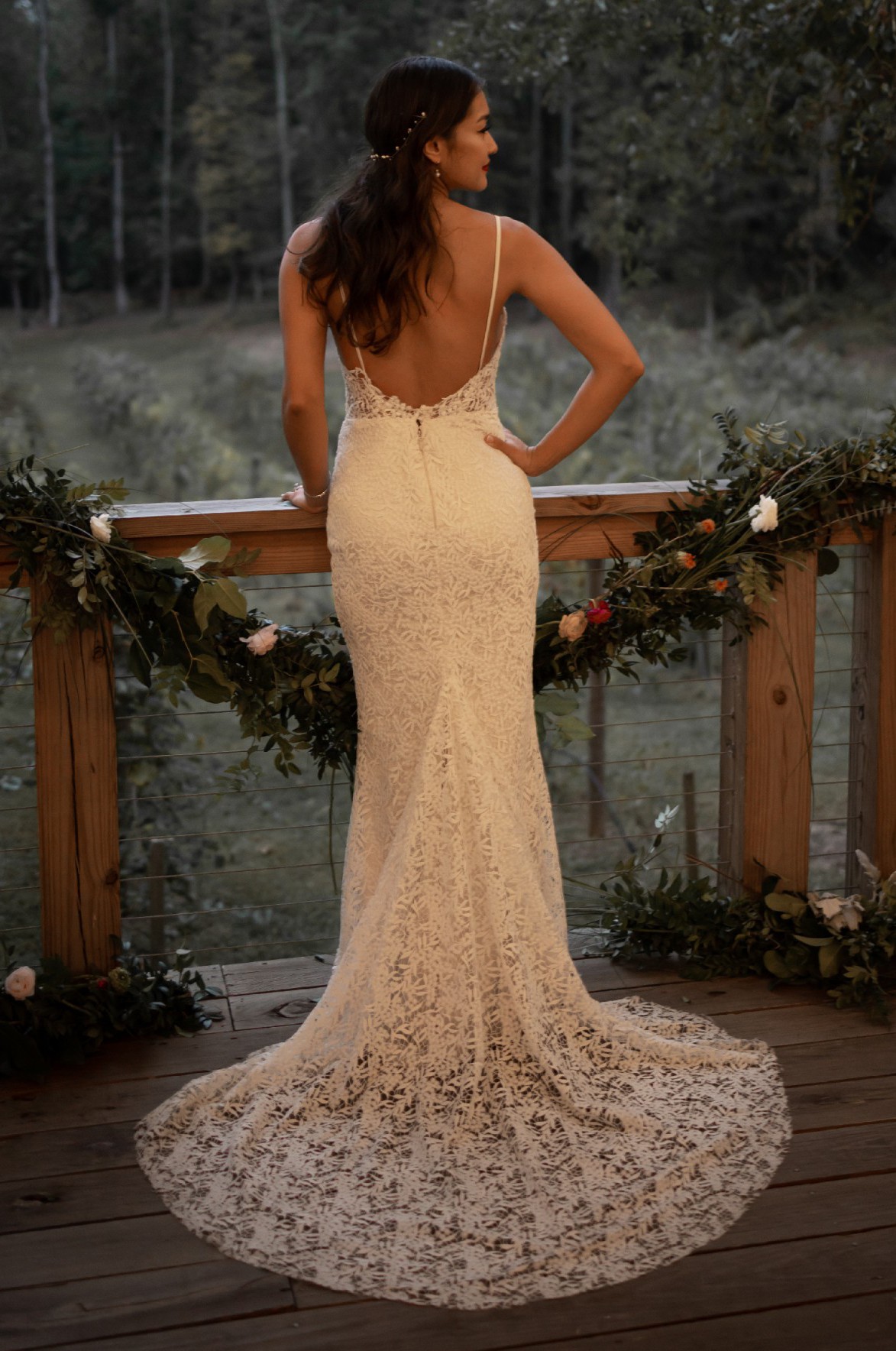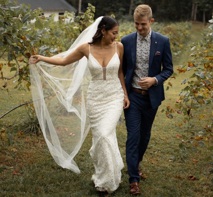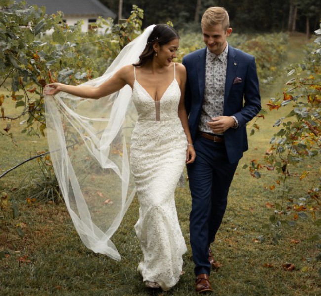 This stunning Laudae Rhodes wedding dress has truly been the centerpiece of my magical day. With its elegant trumpet silhouette and beautiful V-neckline, it perfectly accentuated my figure and added a sophisticated touch to my wedding. The intricate embroidery details throughout the fabric made me feel like a work of art, as they caught the light and added undeniable charm.