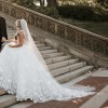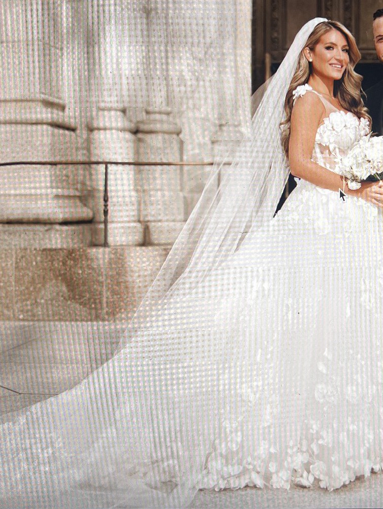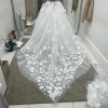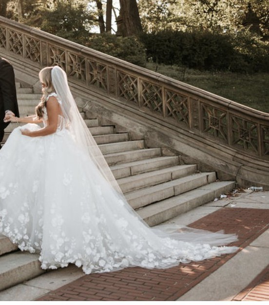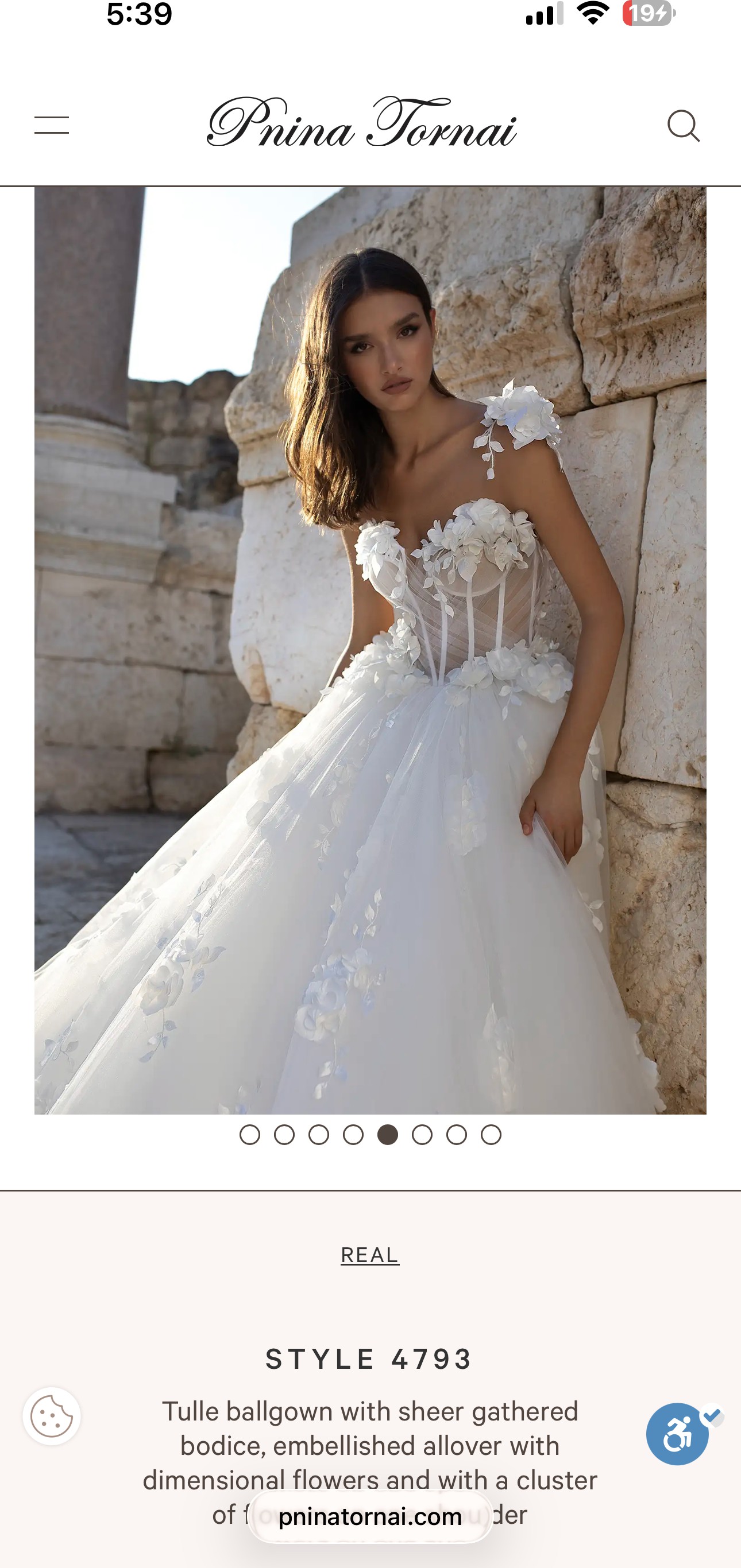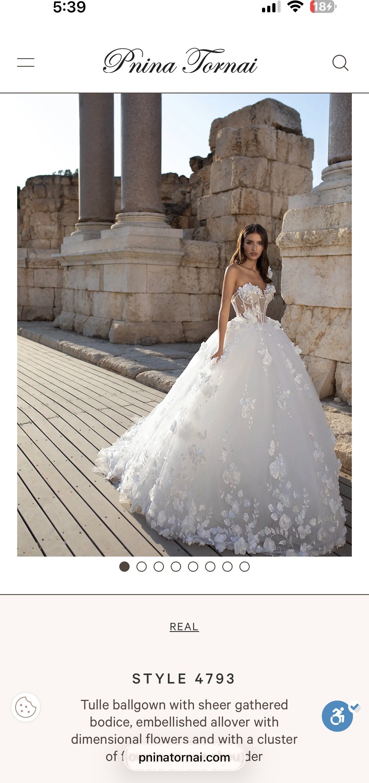 Pnina tornia ball gown with corset top. 3D flowers all about the tulle skirt and corset as well as sheer straps. has a very sexy but appropriate sheerness to it. I am 5’6 with a 34 D cup around 140 lbs. it is a corset top so can truly fit any chest and size girl beautifully. Extra 3D flowers added for additional coverage. Pnina Tornai was there in person assisting and custom designing any changes made at Kleinfeld. Please message me with any questions. Dress was worn for church ceremony only and immediately cleaned/ perserved. Have store receipt reflecting price and proof of purchase.