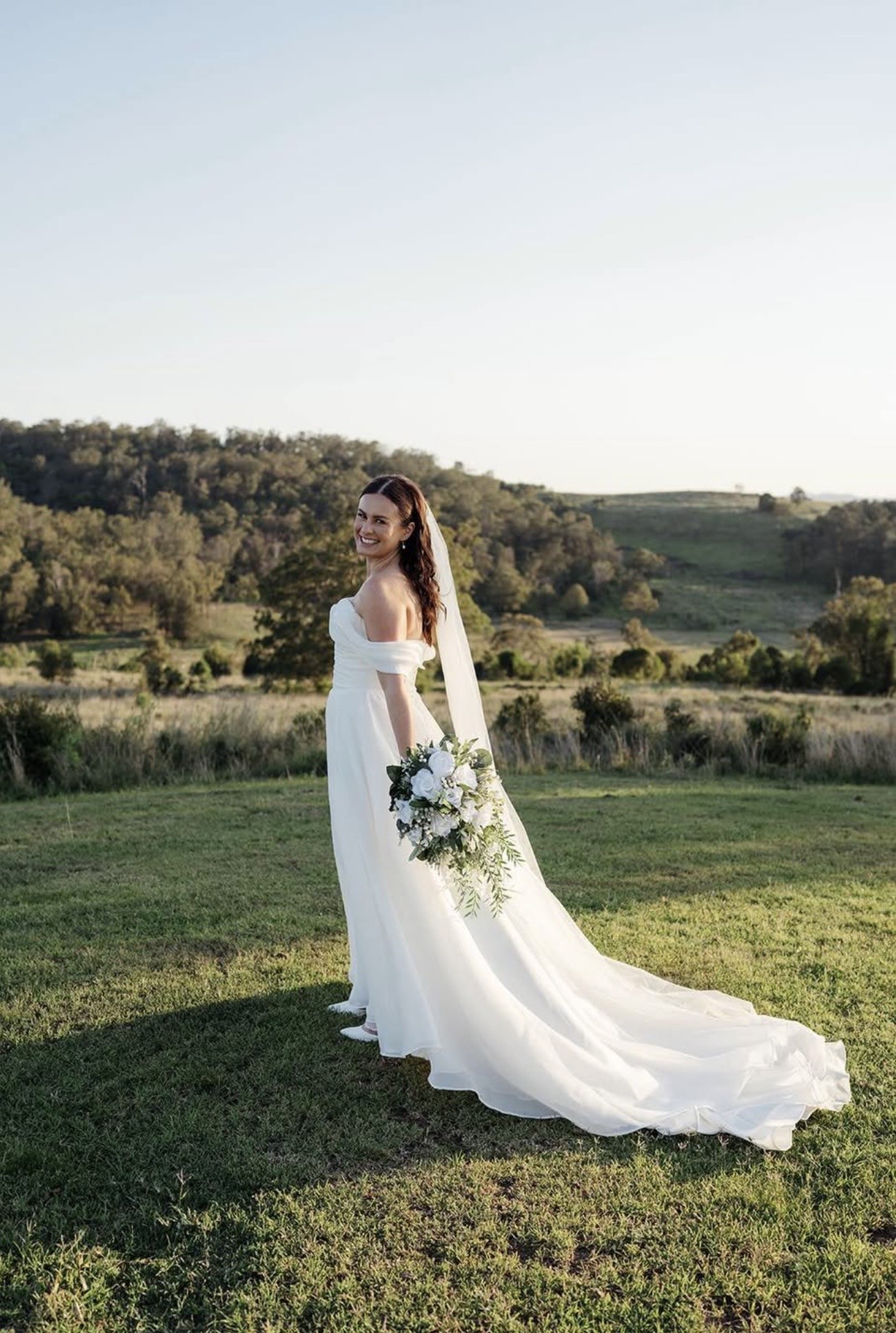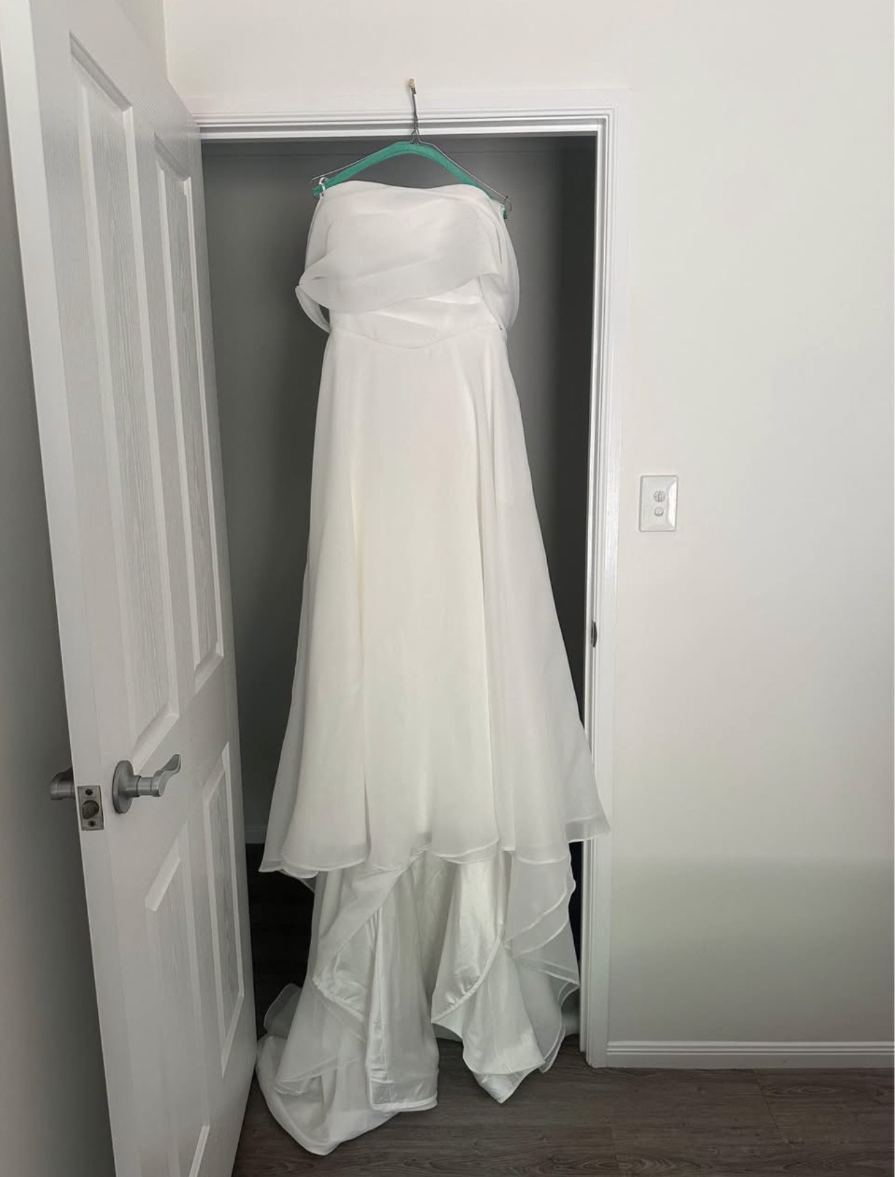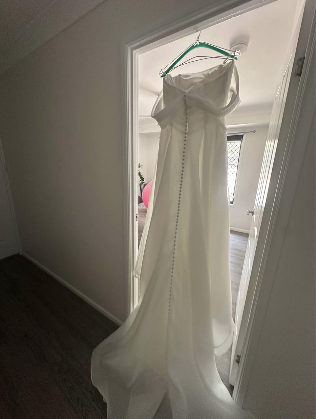 Made from ivory organza fabric with boning around the waist line. Bought October 2025, worn December 2025, dry cleaned immediately