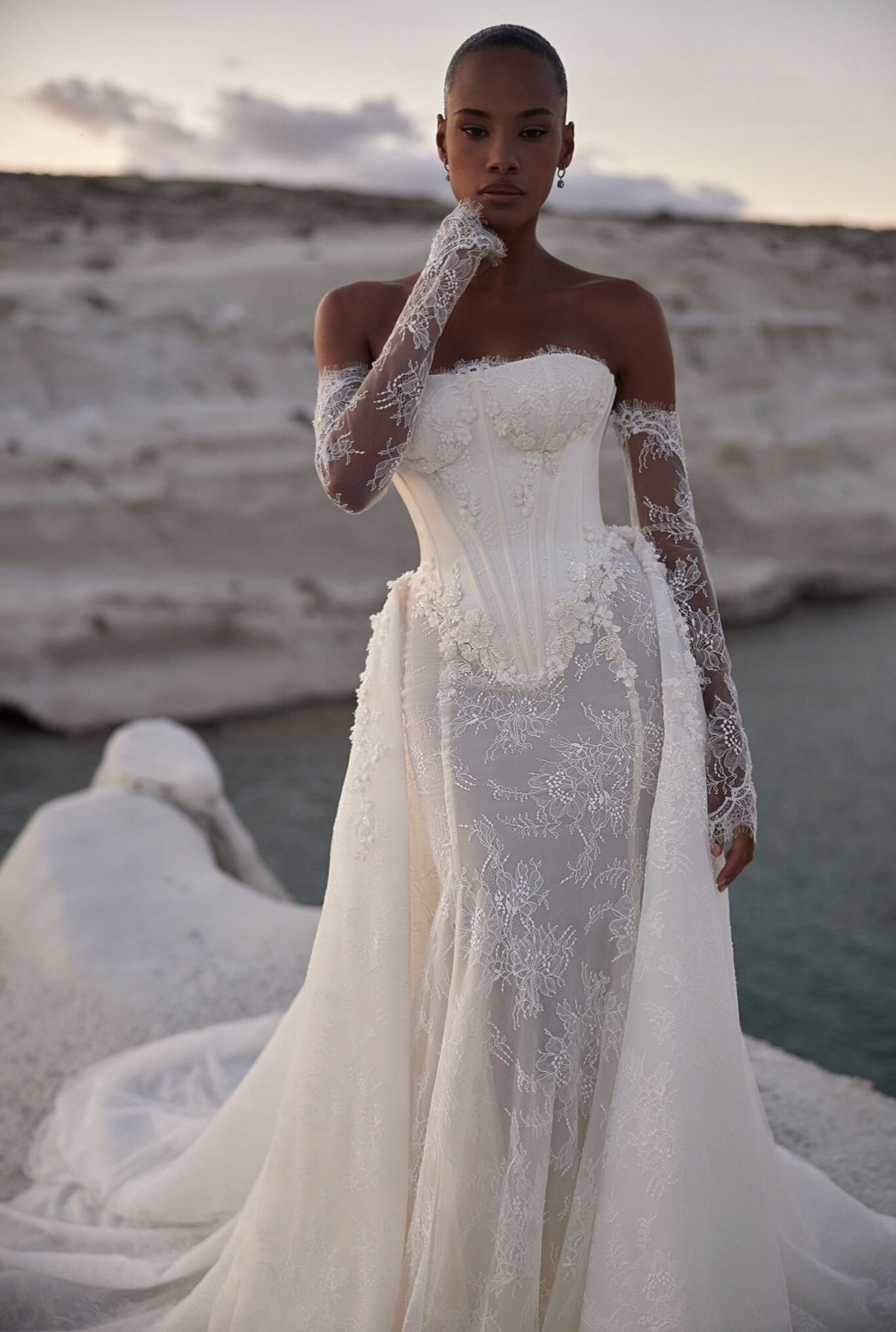 The stunning 3D flowers, delicate beading, and sparkling crystals add that perfect touch of glamour, ensuring I sparkled on my special day. I particularly loved the corset back, which allowed for a customized fit, making me feel both secure and radiant. The detachable sleeves gave me the versatility to switch my look effortlessly from ceremony to reception, while the intricate embroidery and elegant overskirt created a fairy-tale vibe I had always dreamed of.