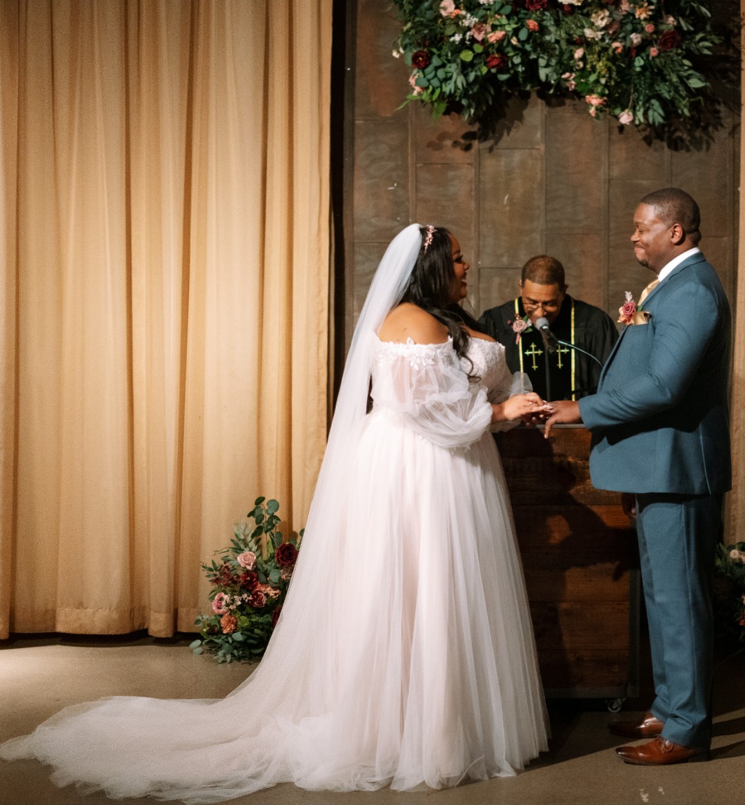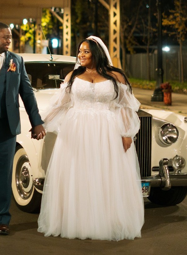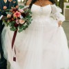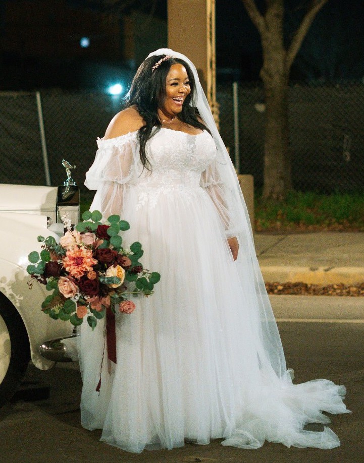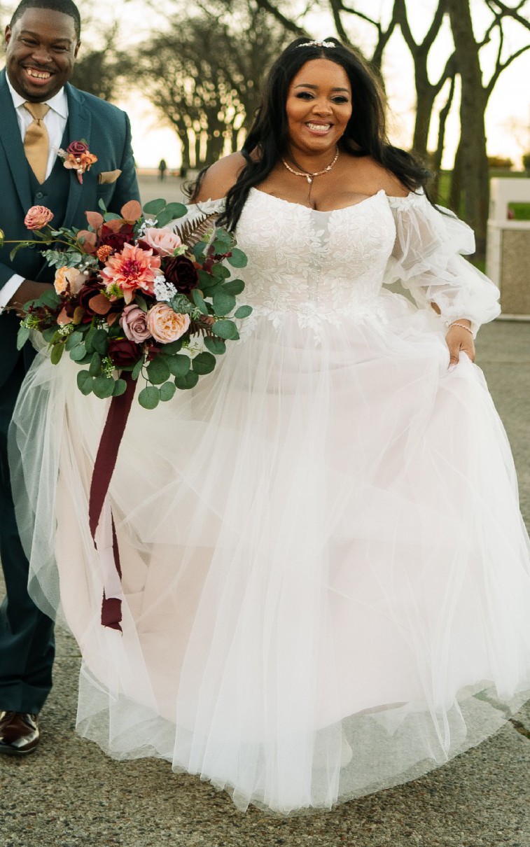 -Comes with cathedral length raw-cut tulle veil