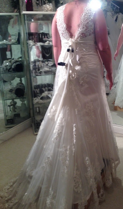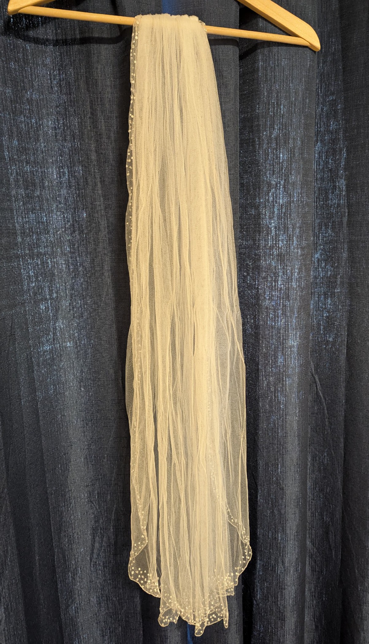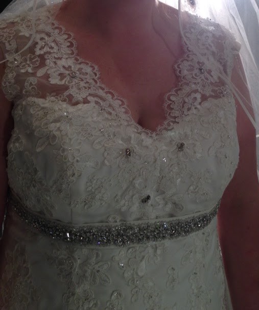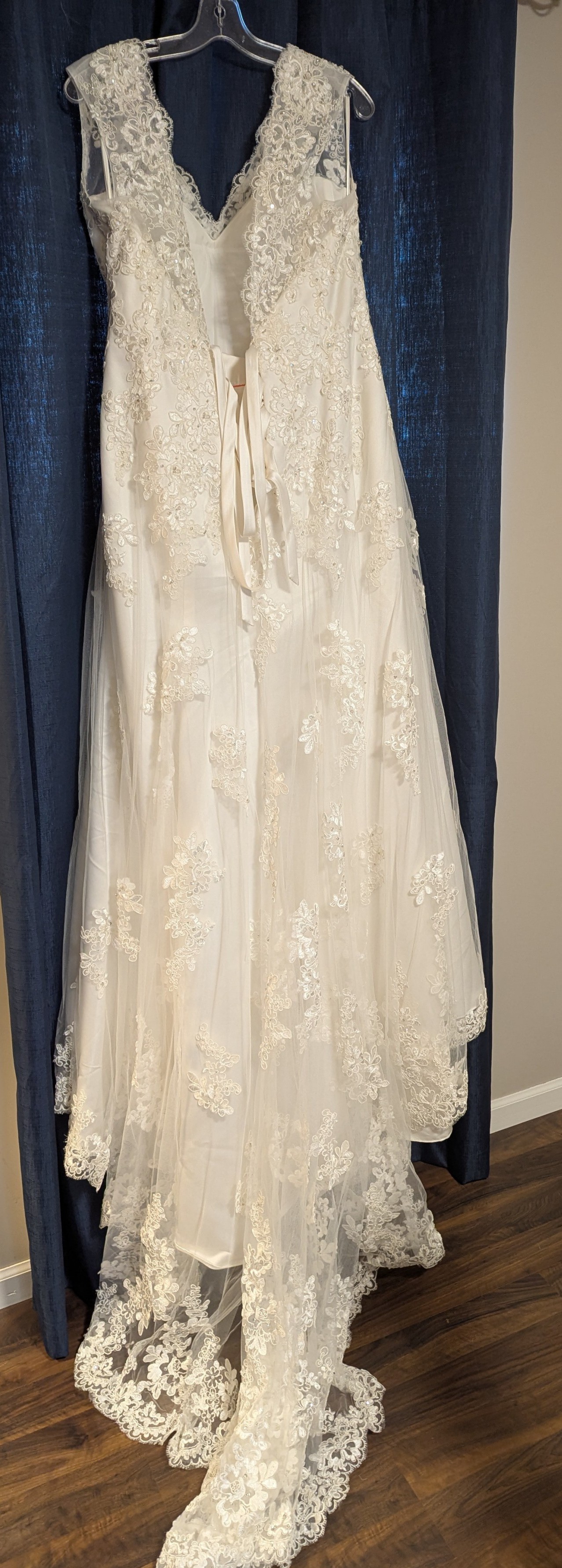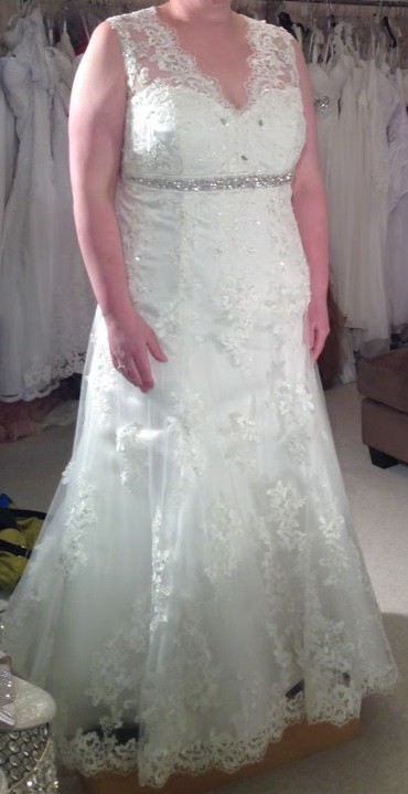 The dress and veil were purchased for about $1,200 several years ago from a bridal shop specializing in plus sizes.