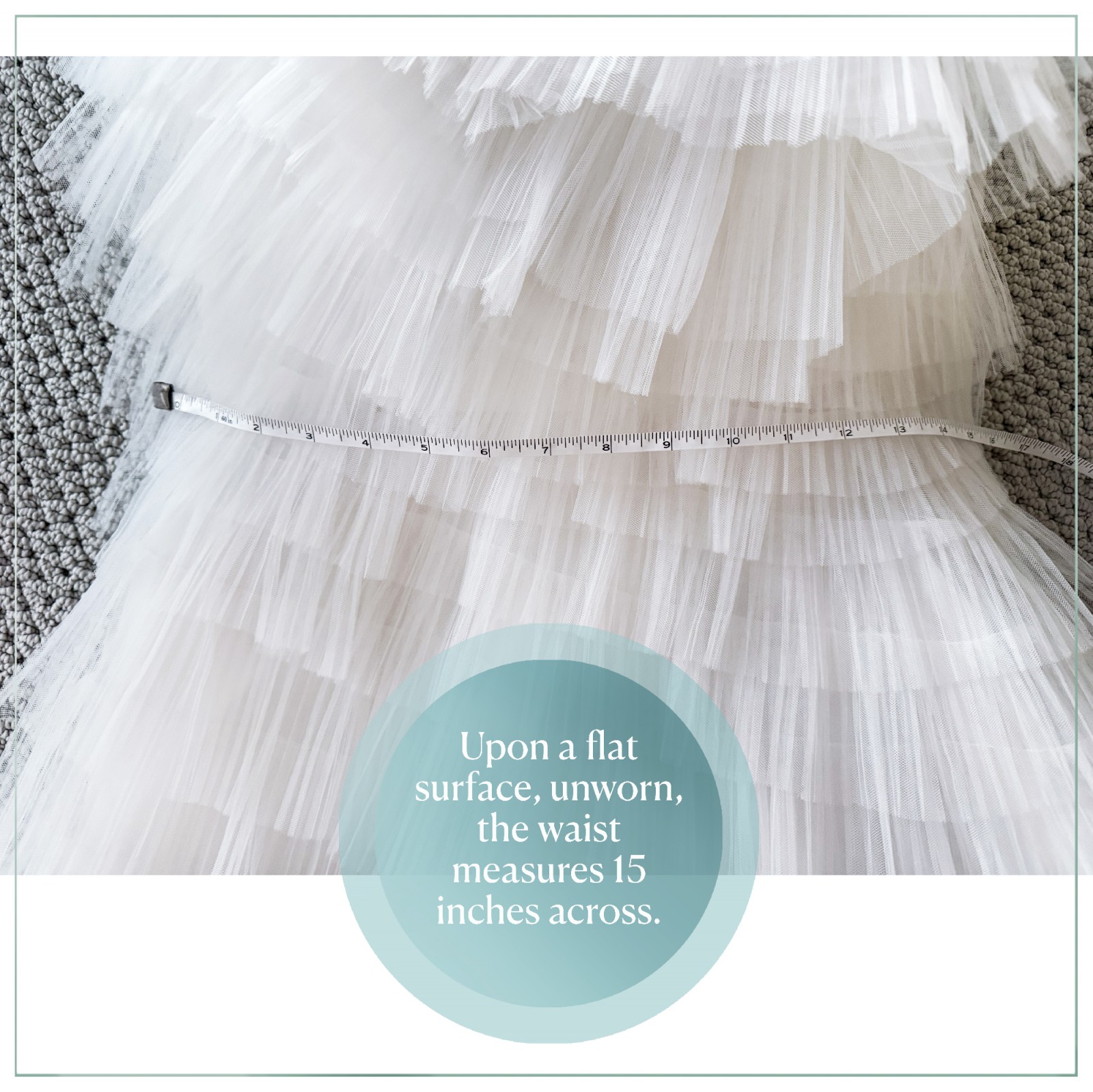 If you’d prefer more definition or length, the dress can be worn with any bow/sash belt or train belt. The bow belt was sold separately (not included) but would be easy to make.