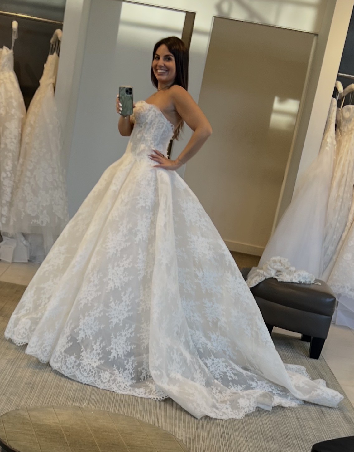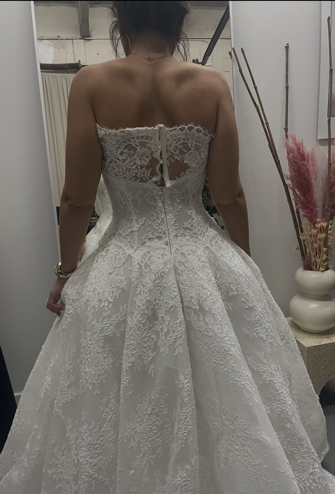 This gown felt incredibly special the moment I found it — I even teared up trying it on. I hope another bride will feel just as beautiful wearing it on her wedding day.