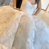 Monique Lhuillier redesigned the interior to remove the stiff boning/crinoline typically used for volume and replaced it with layered tulle and fabric. This creates the same beautiful fullness while making the dress far more comfortable to sit, move, and dance in.