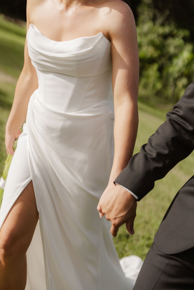 Kyha Apollo Dress Matte Finish - Felt absolutely amazing in this dress. Worn just for the evening before changing to a mini dress. Hemmed to just touch the floor with heels on. Slightly tailored to fit between a size 10-12 women's (Aus), in Kyha sizes it is a size 5. The top has a built in seamless clip at the back to hold the strapless in place, and defer from pulling up. Dress comes with detachable sleeves (not used).