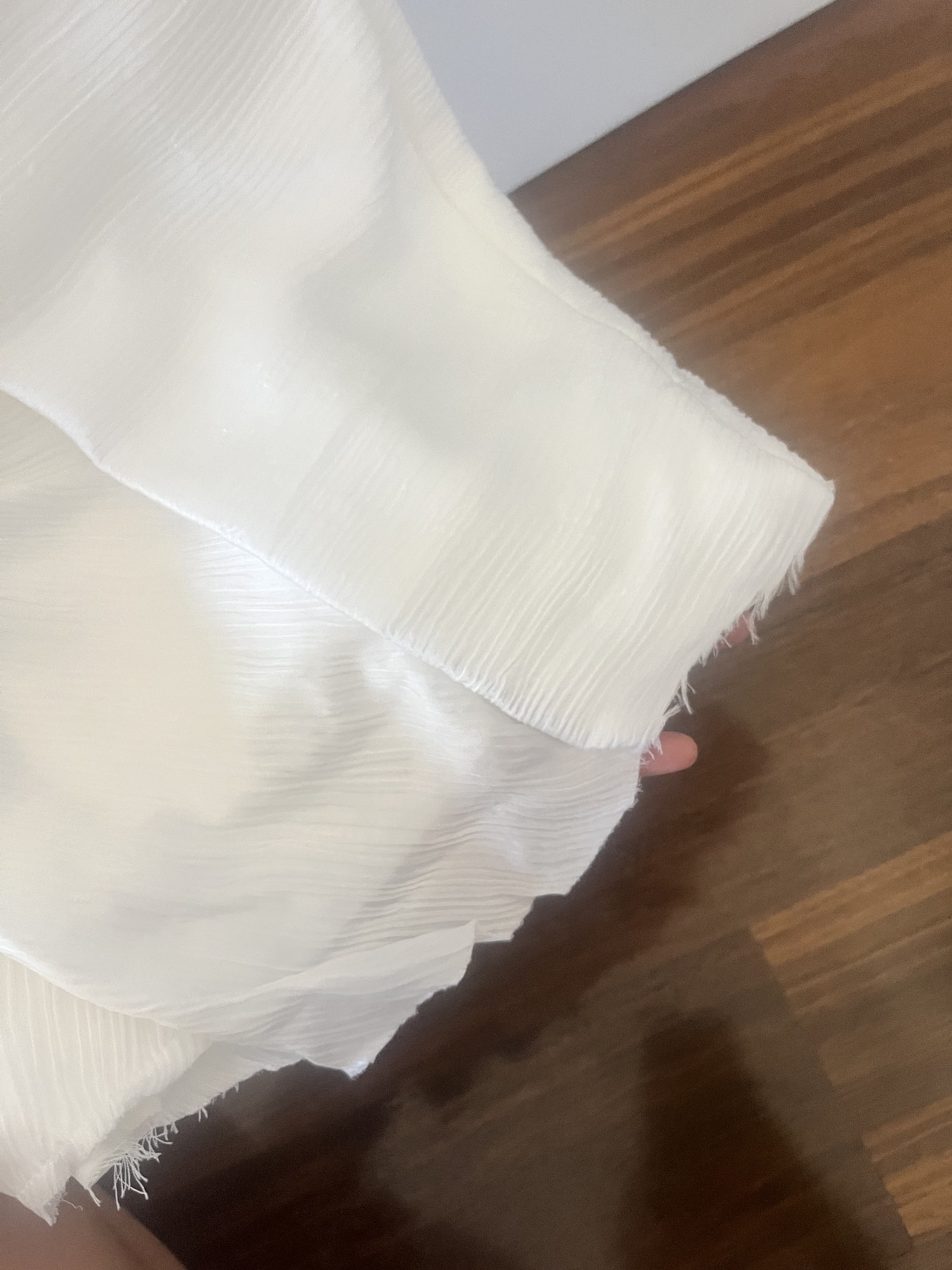 The back hem is currently a raw edge but can easily be professionally hemmed.