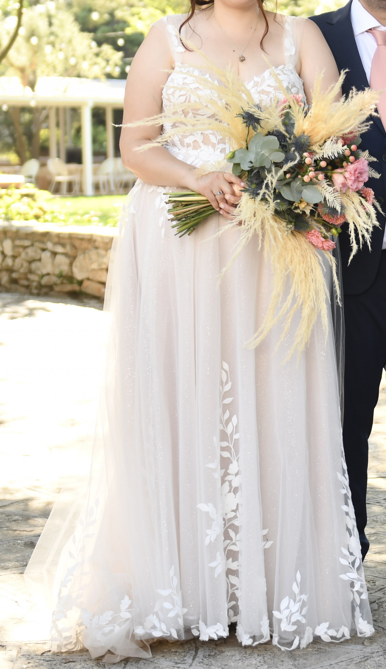 It's a dress that brings together elegance, romance, and a modern flair, making it ideal for any wedding theme. I'm excited to pass on this gown to another bride who will create her own unforgettable memories in it. This dress deserves to be cherished and celebrated again!