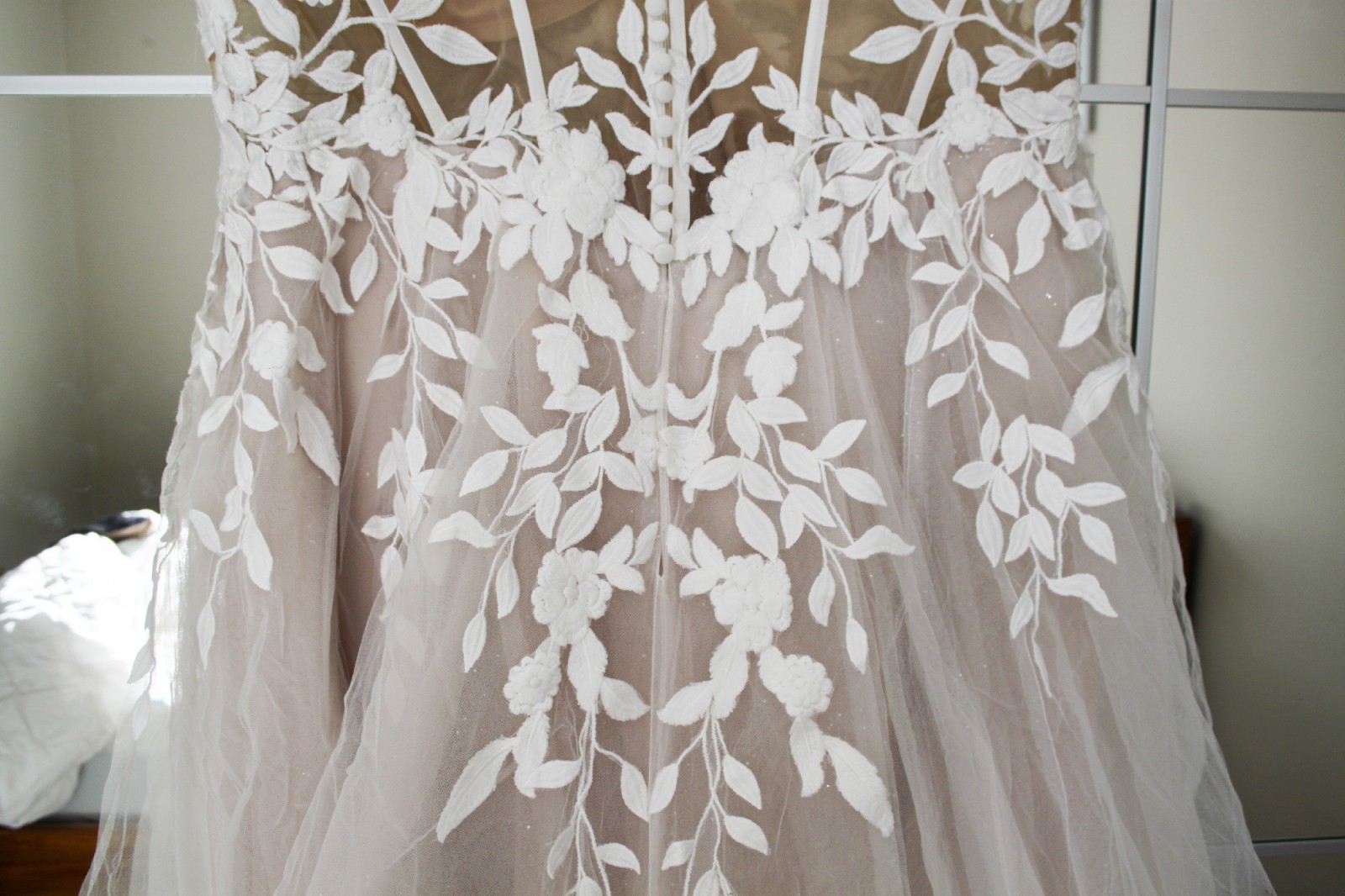 This enchanting Blue Paula wedding dress by Enzoani made my day even more special! I felt like a goddess in this stunning A-line silhouette that gracefully flows to the floor. The sweetheart neckline complements the low back, giving it an elegant and romantic look.