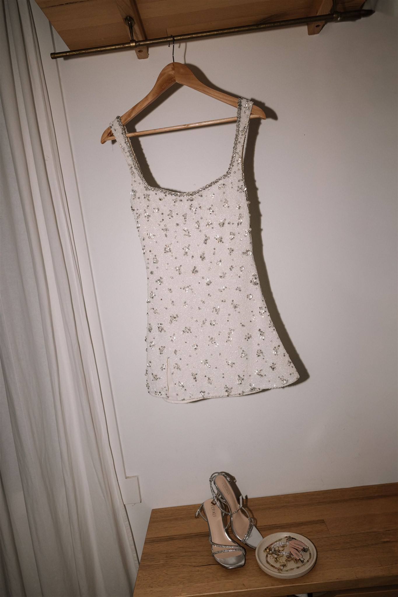 Highly recommend a second dress for dancing, I was so ready to get out of my gown and it was fun to be able to move around when we got to dance floor time. Has been dry-cleaned and in really good condition.