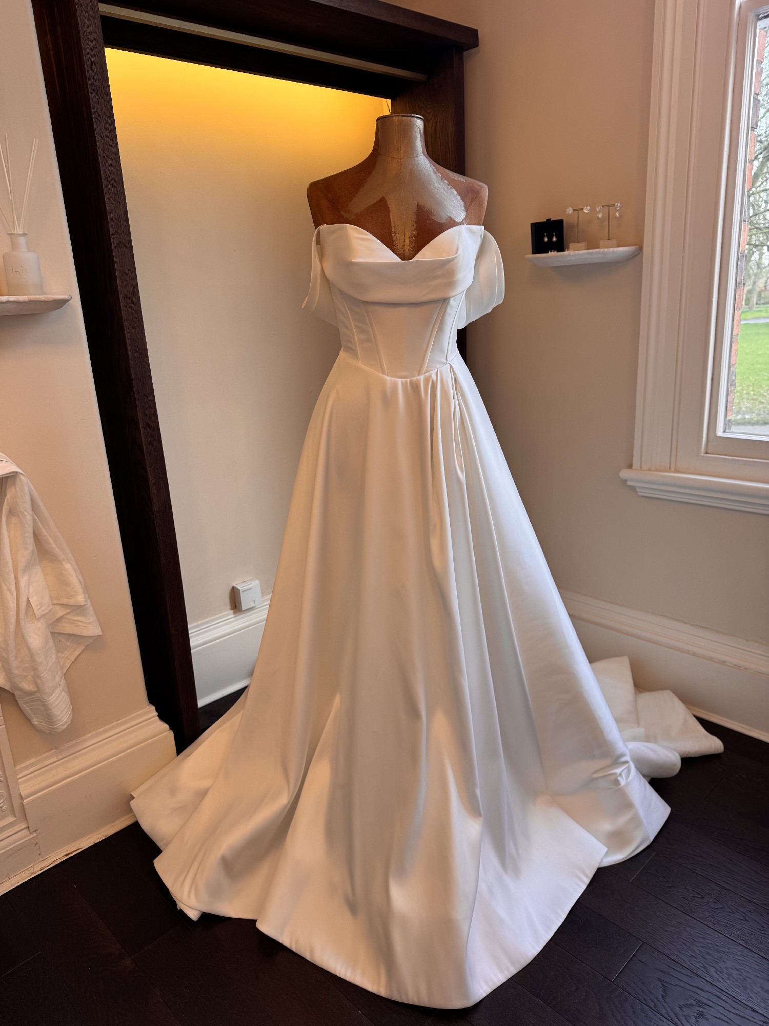 This gown is an ex-showroom sample from our luxury bridal boutique and has been carefully maintained in our studio. It remains in very good condition with only light signs of wear consistent with a showroom piece.