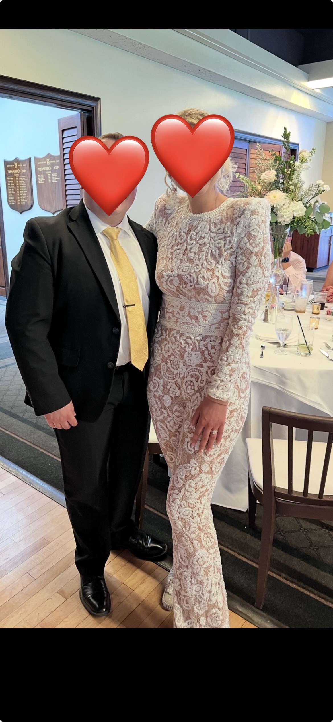 This size 6 jumpsuit is in excellent condition, meticulously maintained, and ready for a new bride to make unforgettable memories in. I felt confident and radiant wearing it, and I hope it brings you the same joy and excitement.