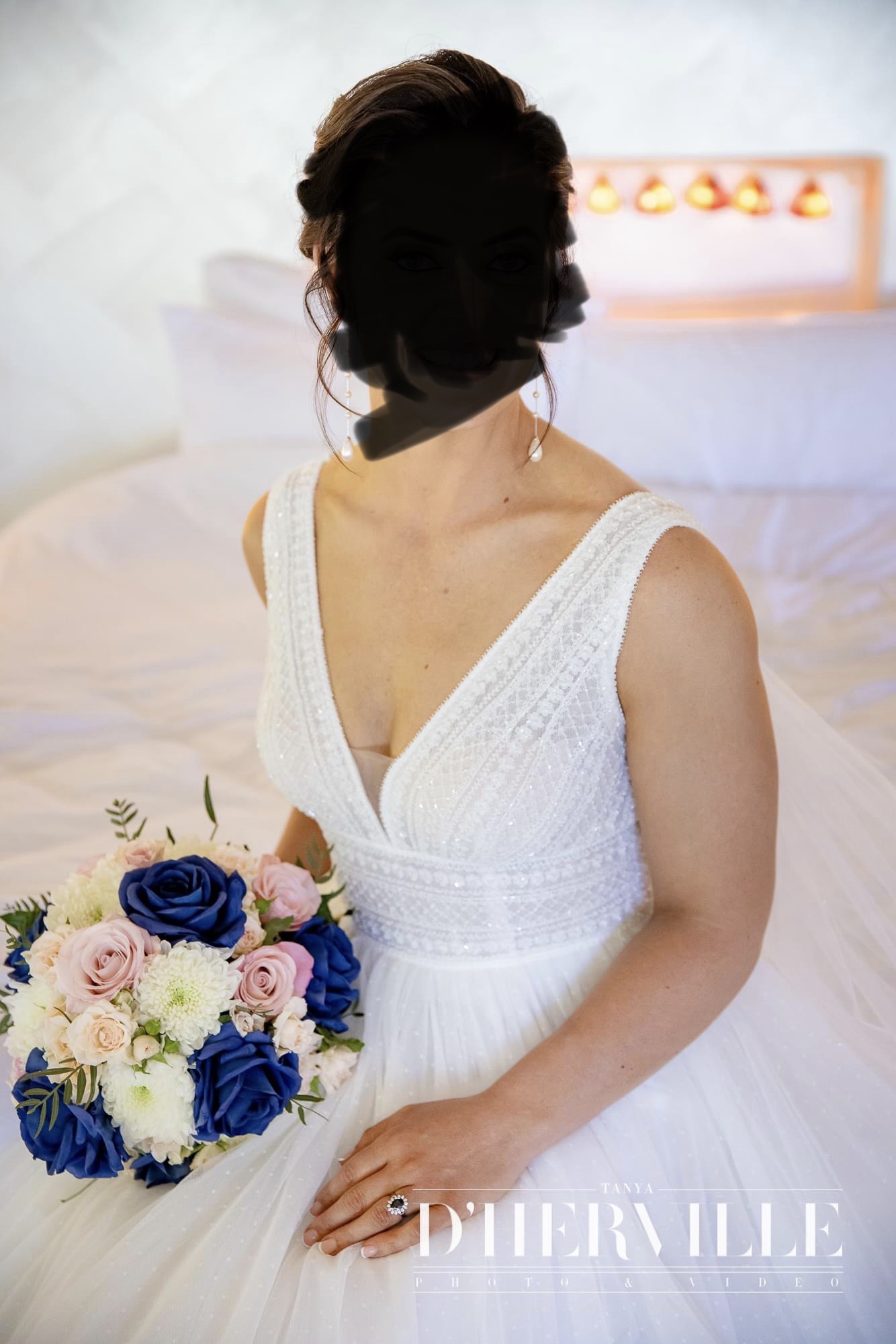 - Buttons and button holes to pin the dress up for during first dance and reception