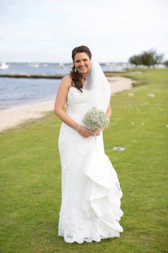 Alfred Angelo 2013 range. Still in amazing condition. Zip back, hook for train at back of dress. Dry cleaned.